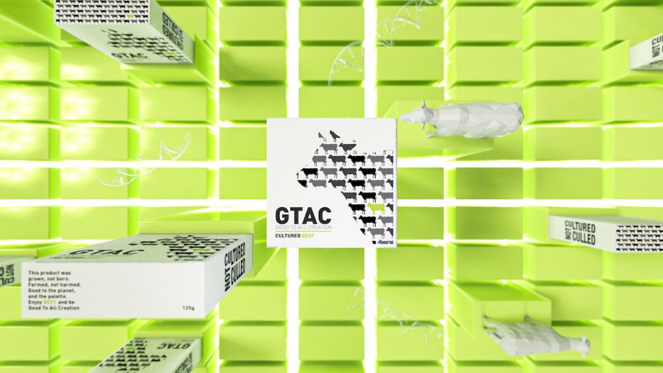 The agency opted to name the brand GTAC – an acronym of 'Good to All Creation', and inspired by the letters that make up all DNA sequences. The name "doesn't shy away from the fact the product isn't quite meat," says Siena Dexter, creative director at Idea Dolls. "Leveraging the mission of kill-free meat and sustainability over flavour cues, belonging neither in alternative meat, not meat categories, GTAC fits somewhere in the middle, a completely new category with a brave, cruelty-free mission at its core."