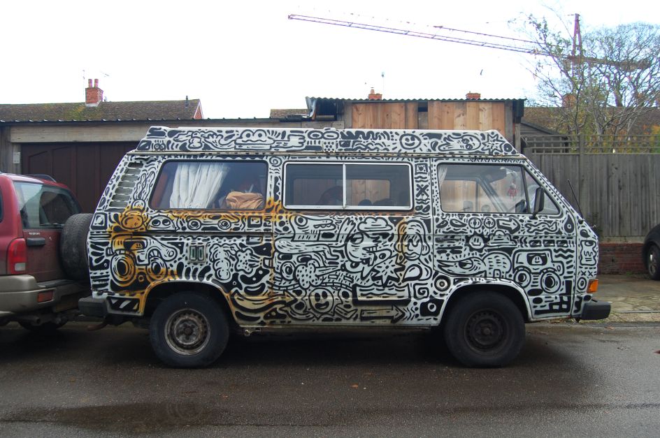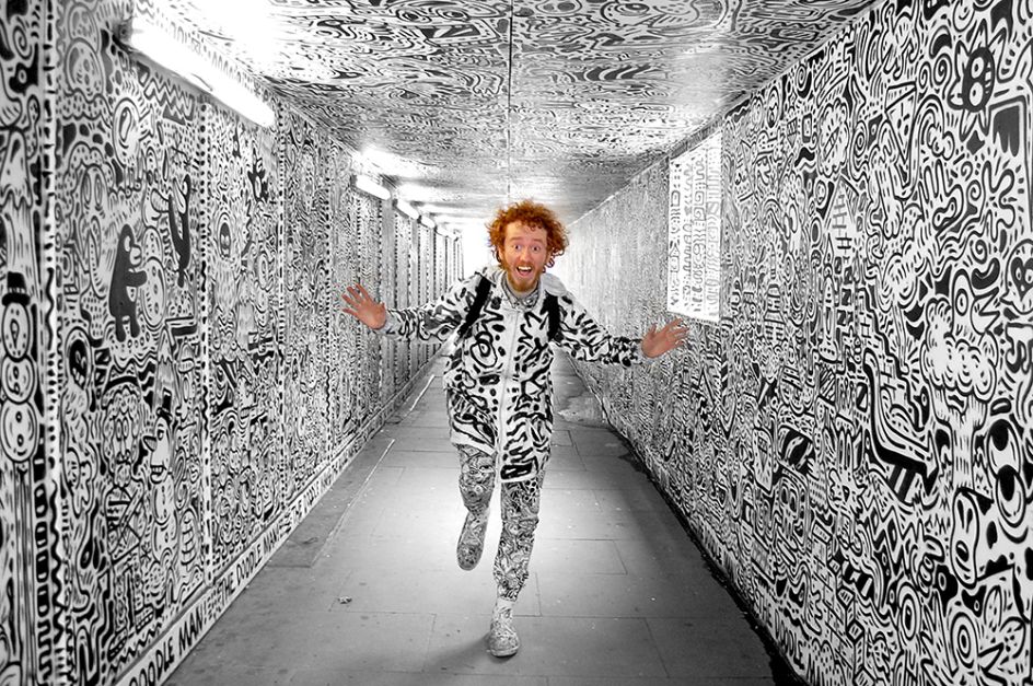 What started out as usual childhood scribbles over everything from school books to his parents’ furniture has since evolved into not only a career but an entirely new universe dubbed – you guessed it – DoodleLand. In interviews with the artist, it’s charmingly hard to tell just how much he believes this place of pure white space and infinite doodling possibilities to be a reality.