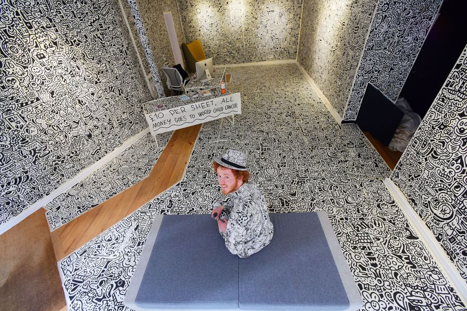 Sam Cox is a 23-year-old artist better known as Mr Doodle, who describes his practice as "OCD – Obsessive Compulsive Drawing".