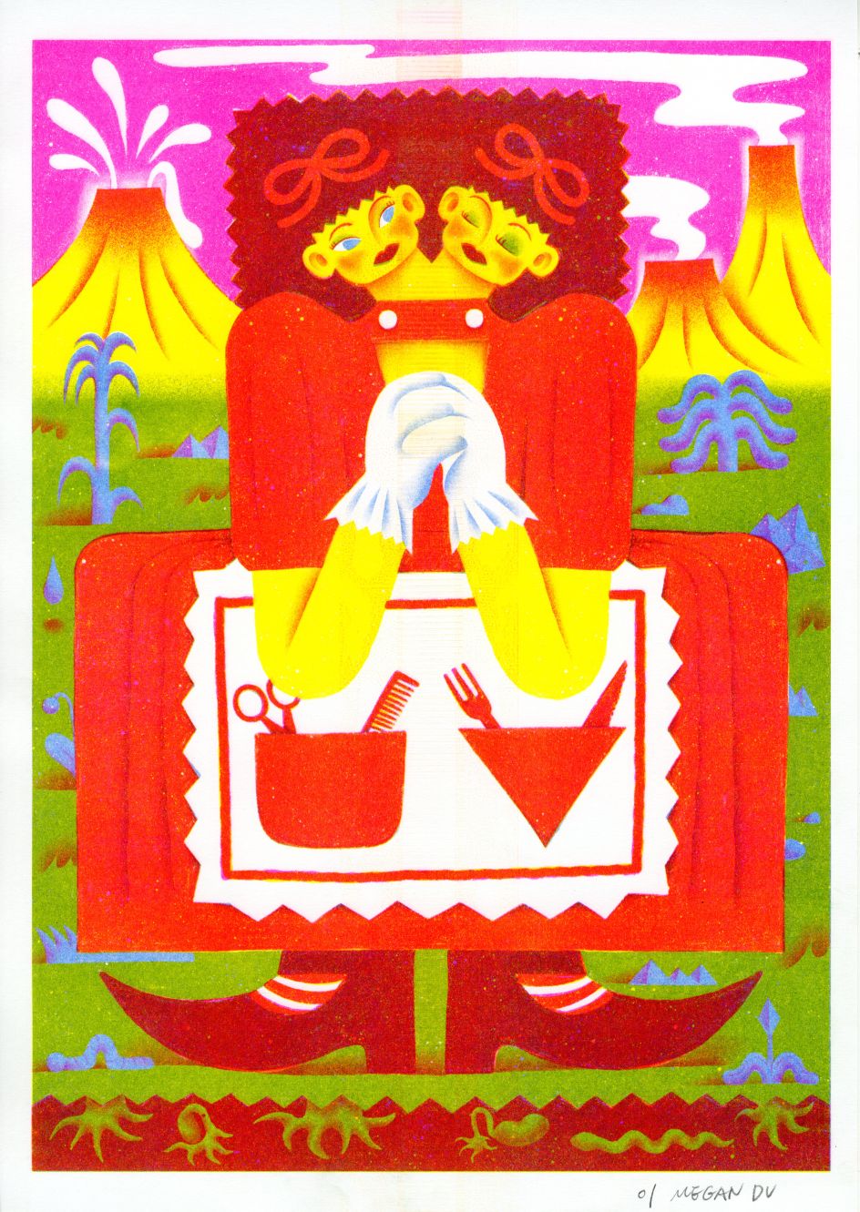 Vintage paper, daily fantasies, and retro-futurism are just some of the many inspirations that fuel illustrator Megan Du. Bright, bold, and impossible to miss, Megan's art also focuses on female perspectives to tell unique stories.