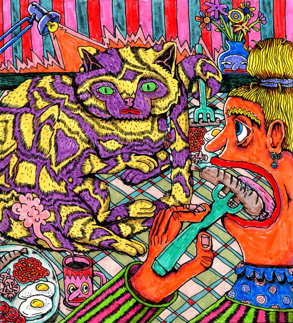 "I used to be a big perfectionist. I could spend so much time just planning and sketching a drawing before I even started the actual process of making. These days I feel like all the mistakes and little accidents that come from not sketching really add to my work. This results in naive compositions and awkward poses, but these imperfections create a personal and human touch to my illustrations.