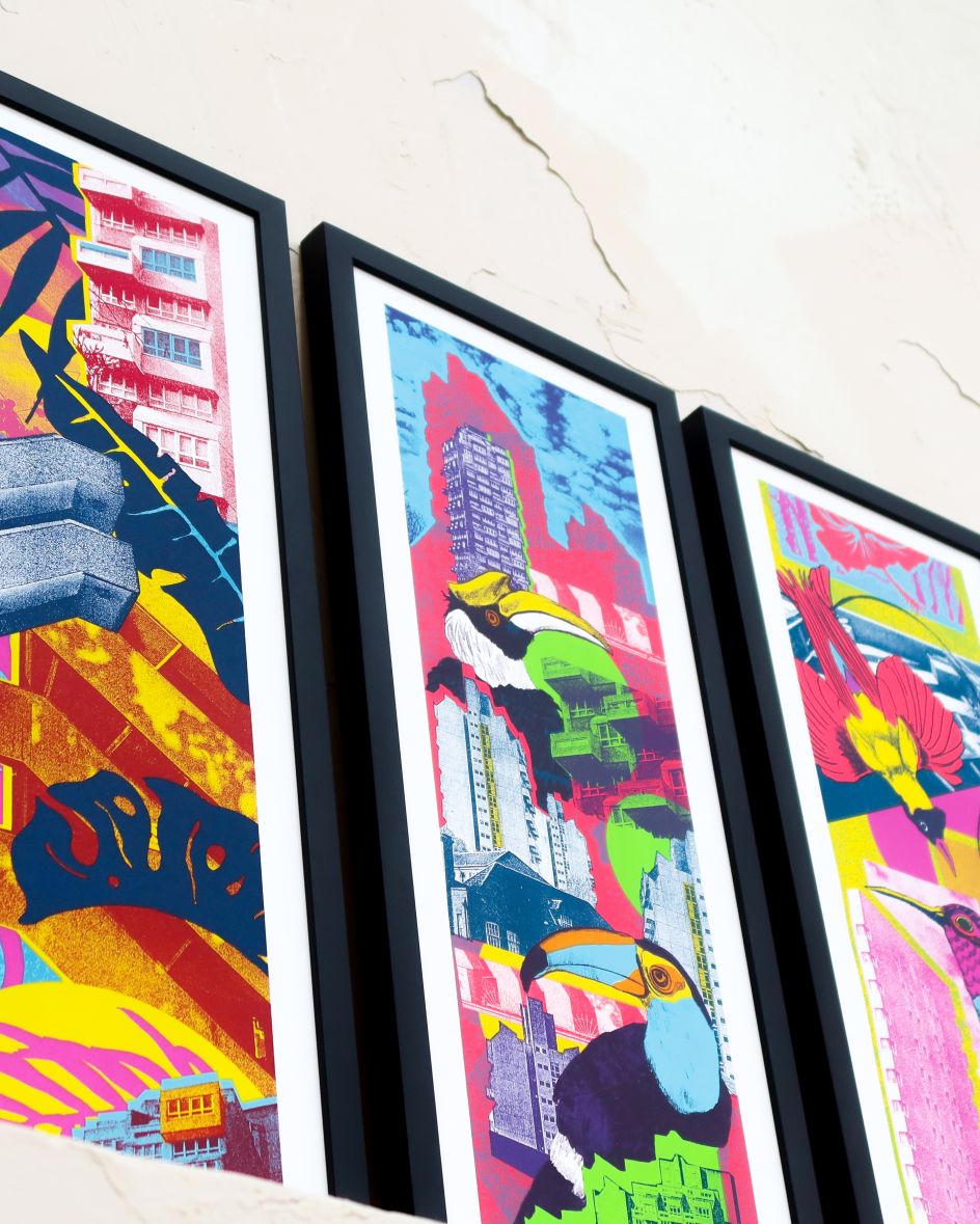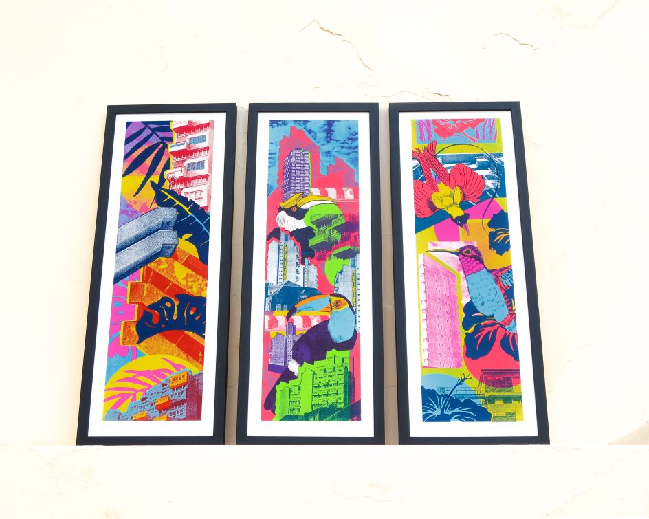 The phrase 'concrete jungle' traditionally evoked images of lifeless, grey concrete as far as the eye can see. But in recent decades, cities have been coming to colourful life, from vibrant street art to roof gardens. And a new series of screen prints reflects this new reality in an eye-catching and entrancing way.