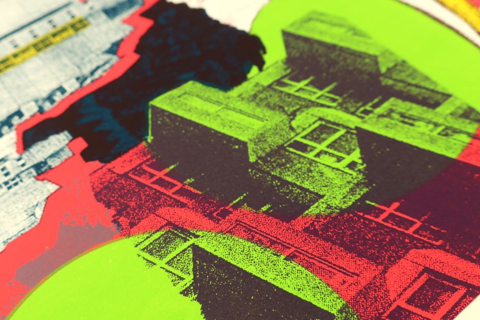 Photography and the screenprint process itself constantly influence her work, even when working digitally. "I see screenprinting as an extension of photography," she explains. "The method of exposing a stencil on a screen with emulsion is also a photographic process! I like to place many images and textures on a screen and collage them through printing. I love discovering new colour combinations through this method by experimenting with layering up different images and textures together.