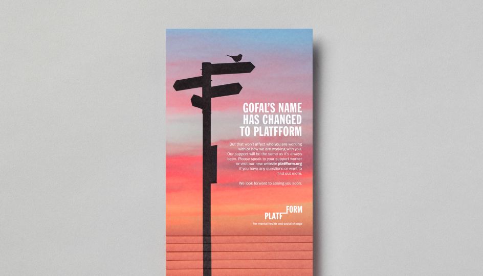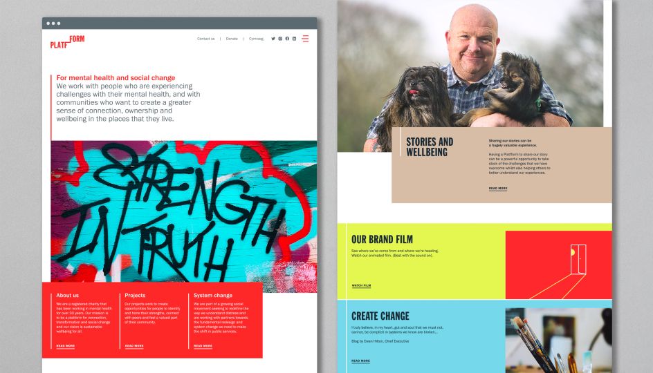 Previously called Gofal, Platfform was established in the 1980s but needed a brand that better reflects its bold new vision and strategy. "We don’t need tinkering around the edges we need large-scale whole system change – I want to lead an organisation that is part of a powerful social movement working tirelessly to see this change happen," explains Ewan Hilton, chief executive of Platfform.
