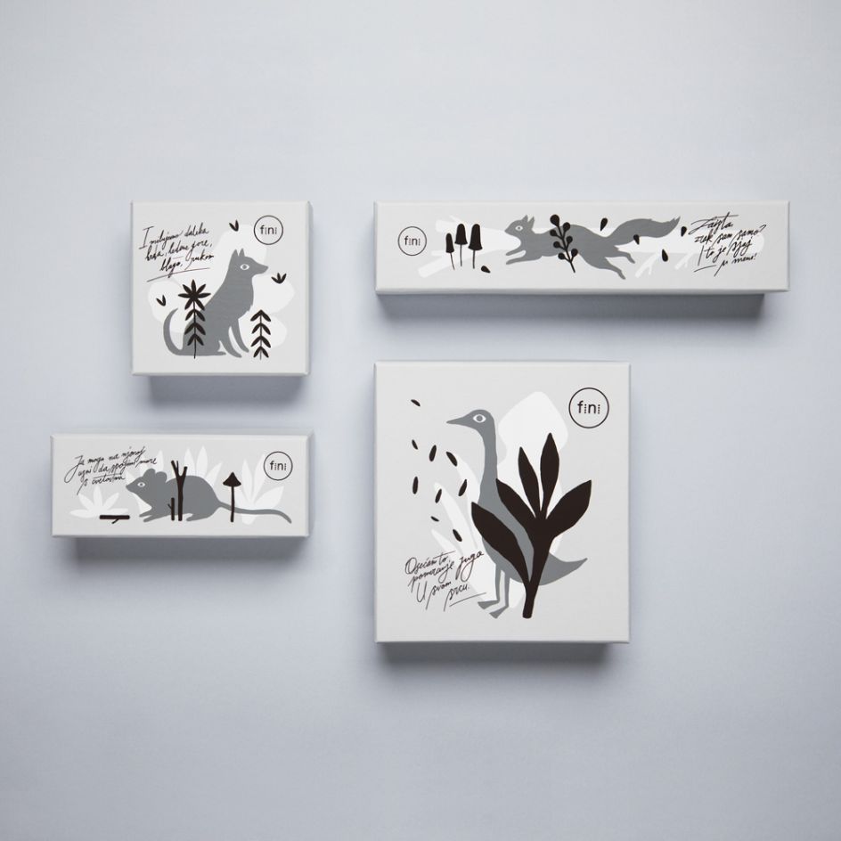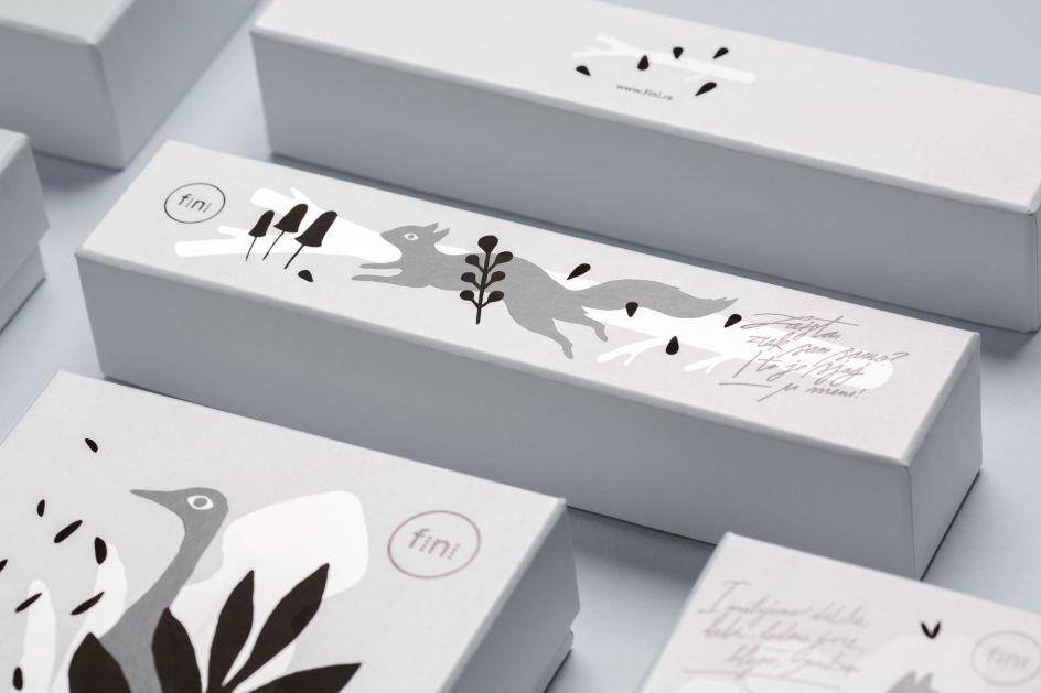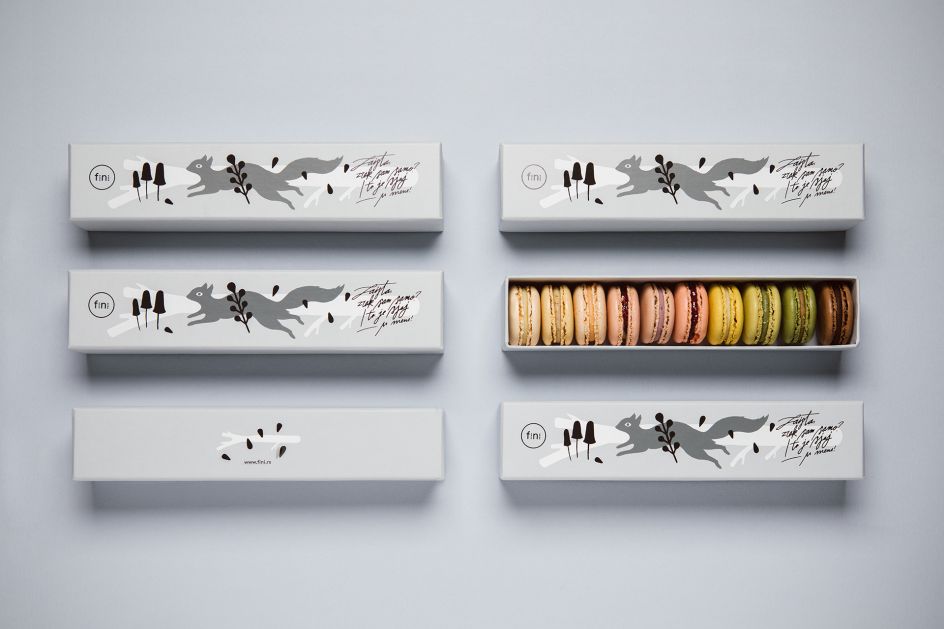 The local firm is famous for its delicious cakes and sweets inspired by French tradition, and so the initial idea was to evoke memories from our childhoods. "In particular, the memories of vintage 20th century picture books we grew up with," explains Marina Nikolic, one of the studio's designers. "The characters of animals and plants come from an imaginary enchanted forest. We particularly focused on a minimal visual language, spontaneity in animal drawings and spontaneous handwriting used on the packaging.