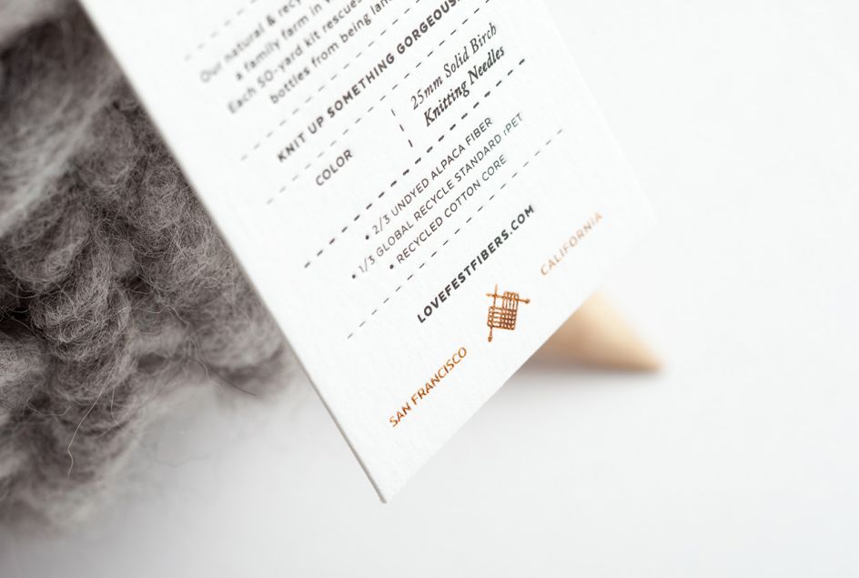 Love Fest Fibers is a new independent company based in San Francisco that creates yarns from 100% alpaca and merino wool, using materials such as recycled plastic bottle fibre and fashion industry remnants.