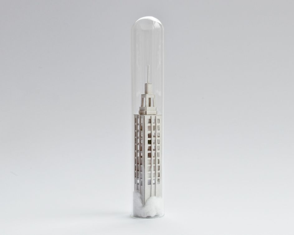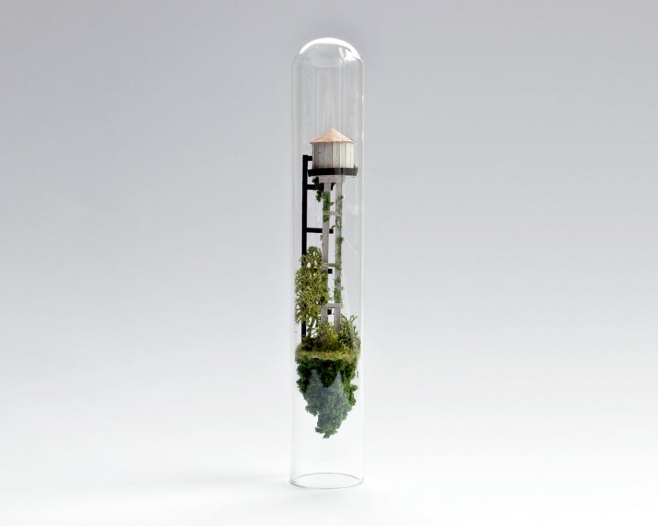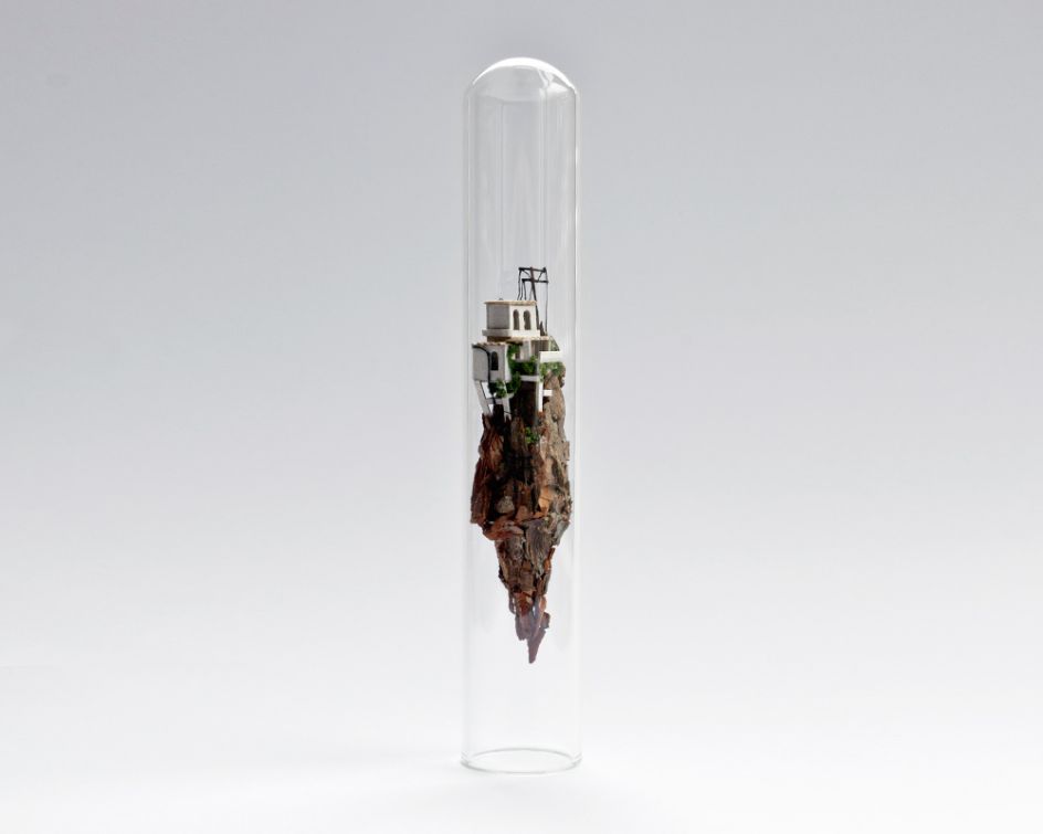 In her series Micro Matter, Amsterdam-based artist and designer Rosa de Jong crafted vertical houses, skyscrapers and elements of nature to fit inside narrow test tubes. With a nod to the impossible bottle, each delicate artwork leaves you shaking your head, wondering how on earth such detailed sculptures could be crafted for such a small space.