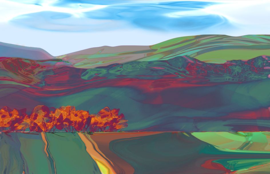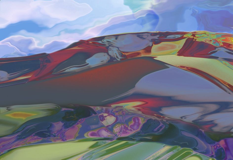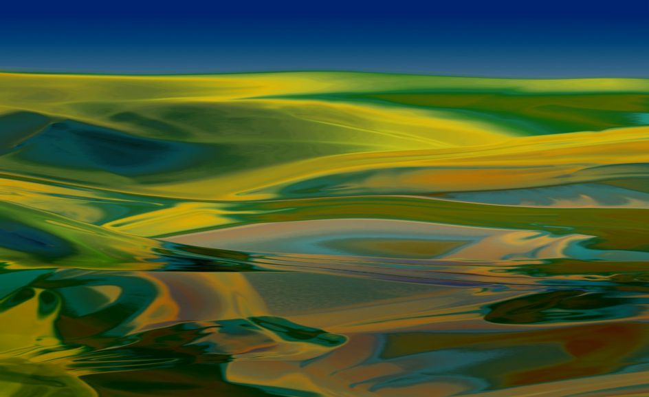 Mike further explains: "My art takes shape by creating organic 3D forms using animation software, and playing with the combination and blending of forms in a very improvisational way. Yet the medium of 3D animation software brings a refinement and precision to it all that calls to mind the ebb and flow of classical music. A dynamic orchestration of colour and rhythm of form. Landscape form."