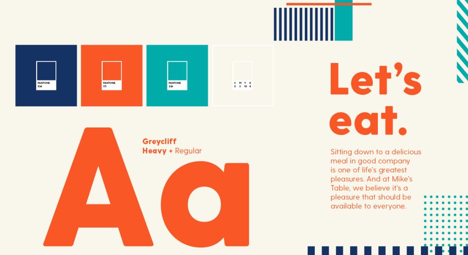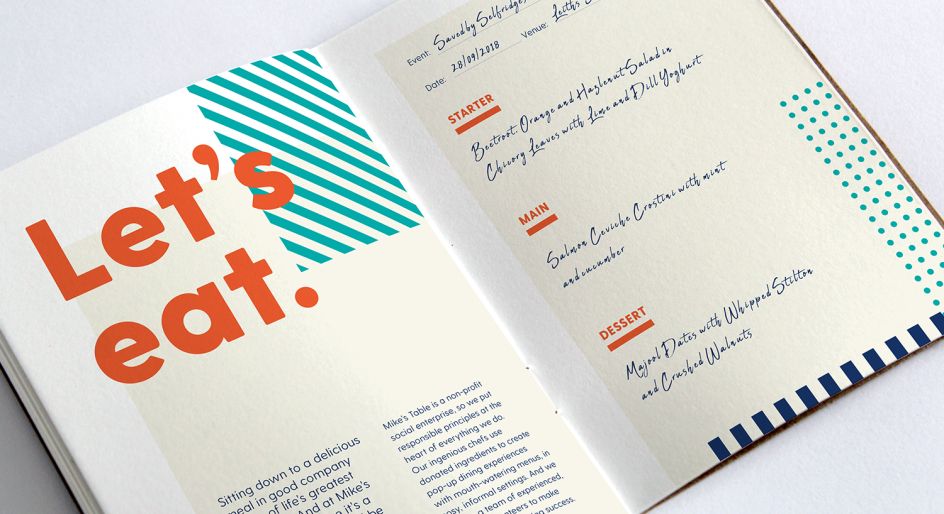 Whatever it means, it makes cute work—such as this identity for non-profit supper club Mike’s Table. A ticket sold to each guest also "pays for someone else to take a seat at the table too," Perq explains.