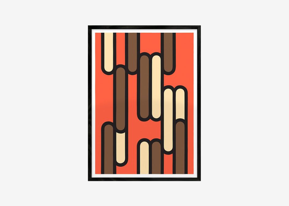 In his series Mixed Bag, designer Jesse Mallon developed six brightly coloured abstract artworks of some of his favourite snacks, ranging from the classic Australian musk stick to Japanese Pocky. The collection was created for Studio Brave in Melbourne where we works, as part of an extracurricular project which encouraged him to develop and exhibit a range of prints.