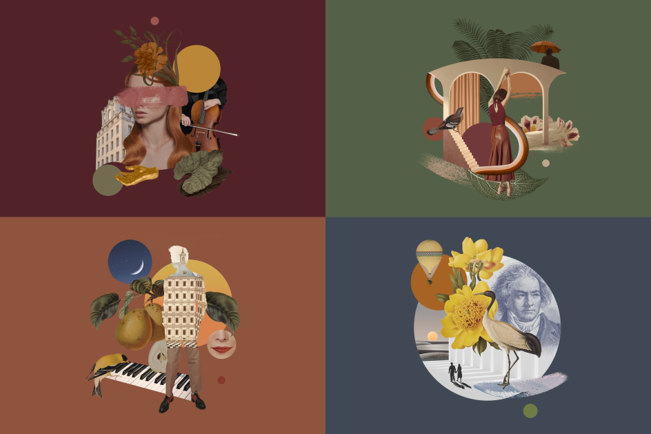 "This flexibility was integral to the commission," explains Susie Stubbs, the managing director at Modern Designers. "The BBC Philharmonic’s season runs for nine months, with its associated advertising/marketing campaign running for twelve. Its audience is changing, becoming more visually sophisticated and time-poor. A static, unchanging campaign would quickly feel stale; Aleksandra’s collages can instead be reinvented, edited and animated."
