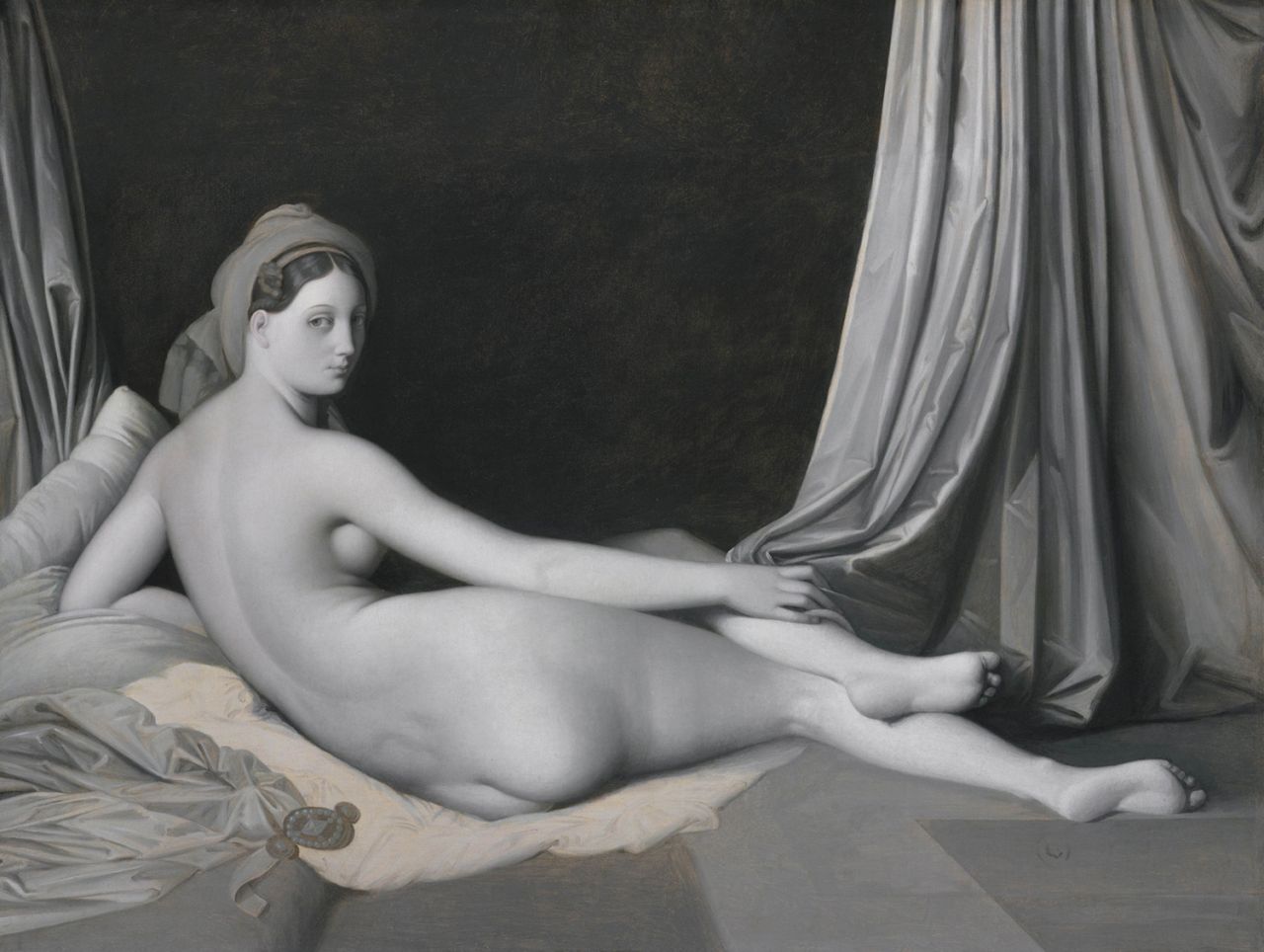 Main image: Jean-Auguste-Dominique Ingres and Workshop Odalisque in Grisaille about 1824-34. Oil on canvas. 83.2 × 109.2 cm. Lent by The Metropolitan Museum of Art, Catherine Lorillard Wolfe Collection, Wolfe Fund, 1938 (38.65) | MONOCHROME: PAINTING IN BLACK AND WHITE, by Lelia Packer and Jennifer Sliwka is published by and copyright of National Gallery Company Limited, 2017.