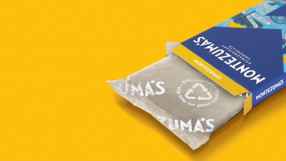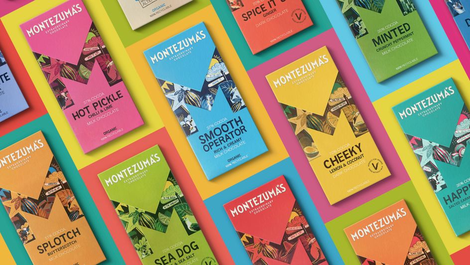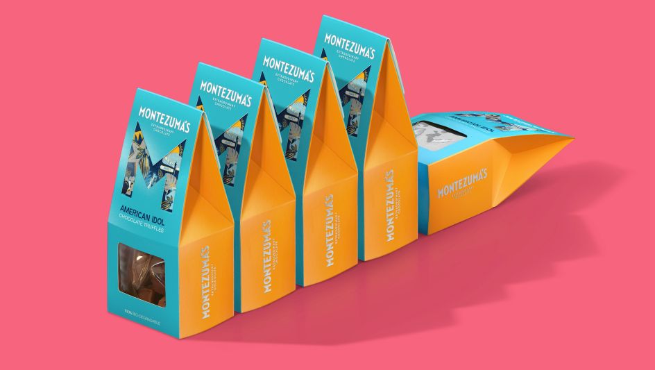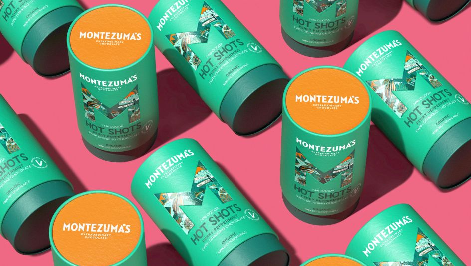 There's a unique wordmark designed to reflect the sharp edges within the brand icon, while a six-pointed star in place of the apostrophe in Montezuma's is a "reassuring nod" to the old brand identity.