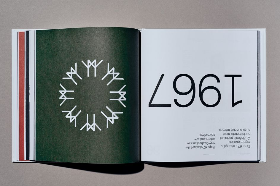 Each of the four sections represents a different part of the city. "This conceptual book plays with minimalist graphic codes from the 60s and 70s, with the 1967 World Expo of Montreal and the Olympic Games of Montreal in 1976," says Studio Miles.