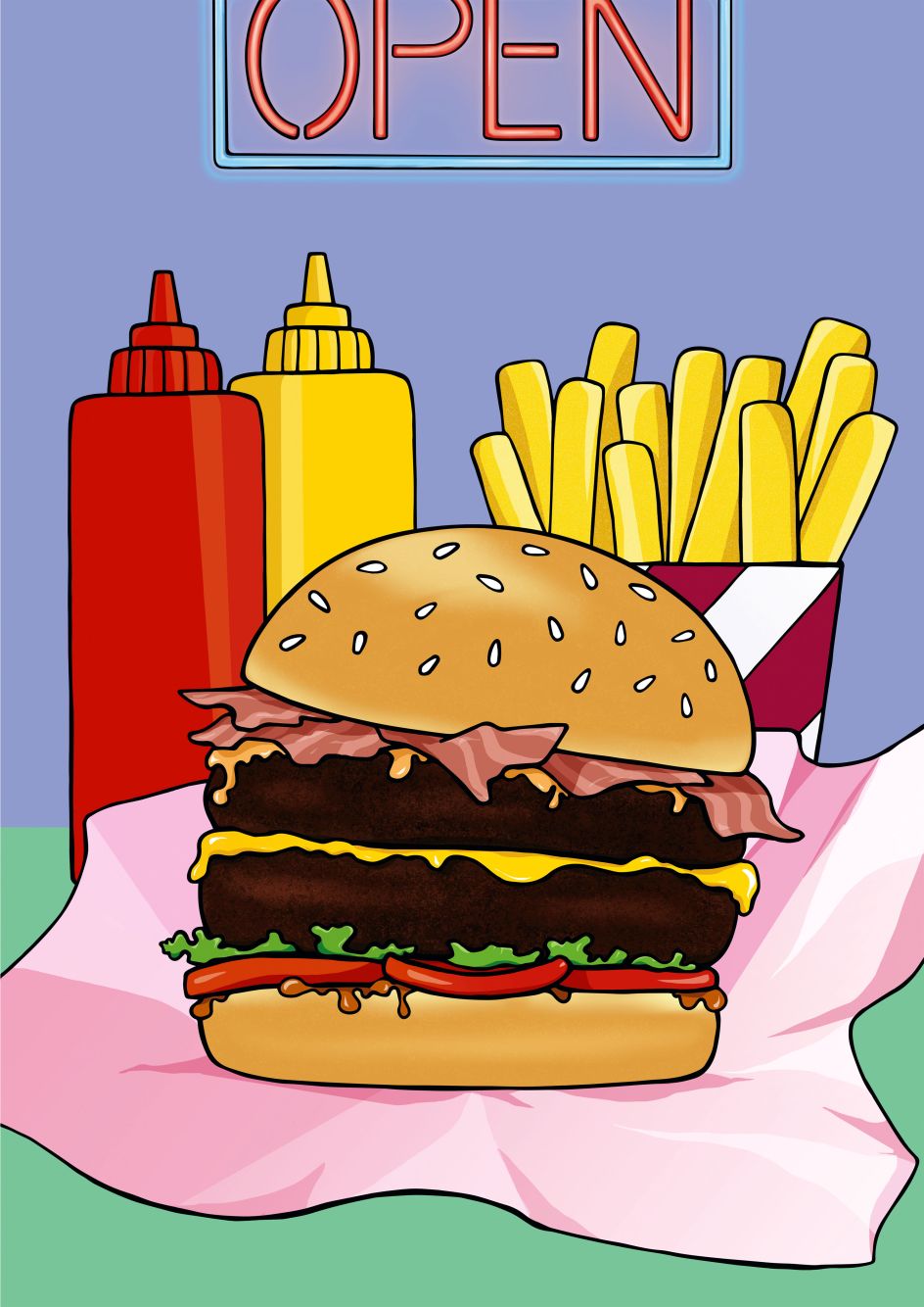 This series of illustrations was created by Liz Studentschnig, an Austrian graphic designer and illustrator based in Leeds. Someone who loves a good story, Liz creates bold and vibrant artwork brimming with character, inspired by the likes of Toulouse-Lautrec, vintage poster art and the bright and colourful comics realm.