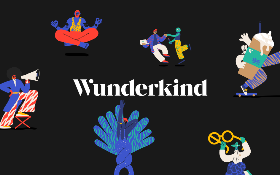 It has translated the idea of "individuality" into a vibrant and flexible identity, built from a diverse and eclectic cast of characters with vivid and expressive graphic patterns on their clothes and skin. It's these characters that form the underlying design system for the brand, and they also communicate the company values, client benefits, and consumer behaviours that Wunderkind can see and connect.