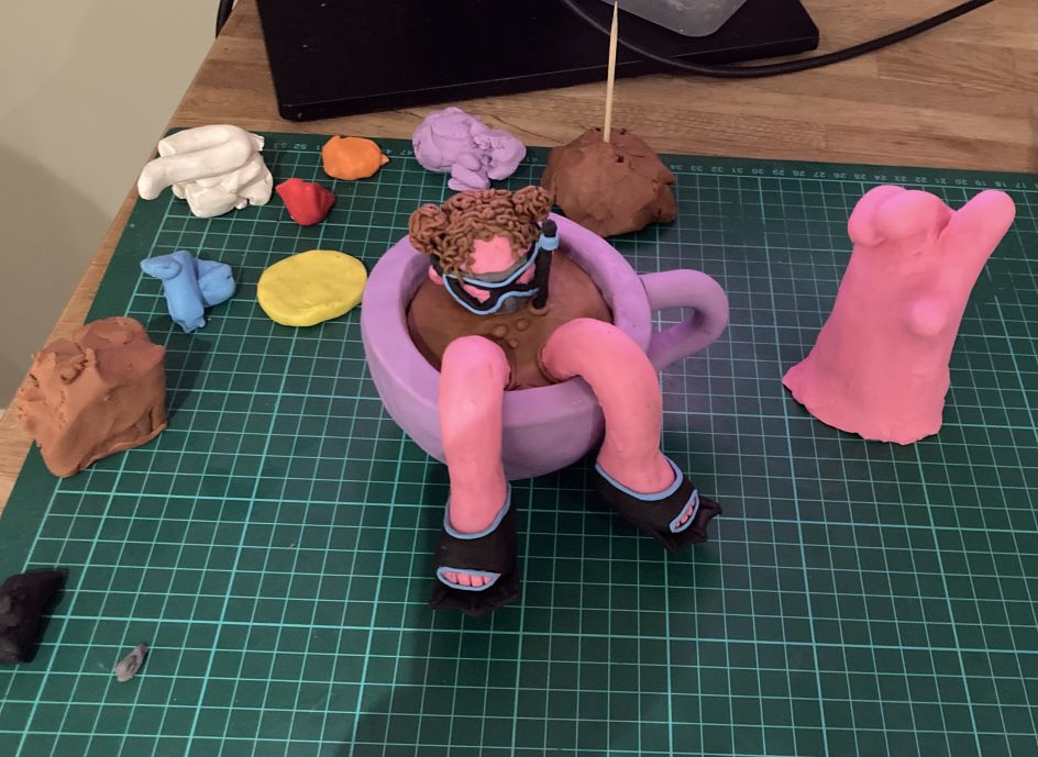 A French sculptor specialising in plasticine, Inès's work is characterful, playful and cleverly depicts the everyday mannerisms and nuances of human expression. A graduate of the French animation school Supinfocom, Inès arrived in London in 2012 and worked as a 3D animator for some years. Having a passion for the imperfection and accessibility of plasticine, she decided to move away from computer-based work to start using her hands to create. Something stuck, and she's been immersed in sculpture and animation ever since. "I'd describe my work as colourful, joyful, with a love for dark humour. I adore the clay medium, the childish side of it, and the fact that it is accessible to anybody."