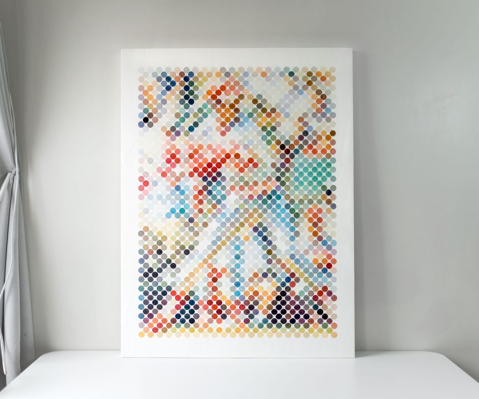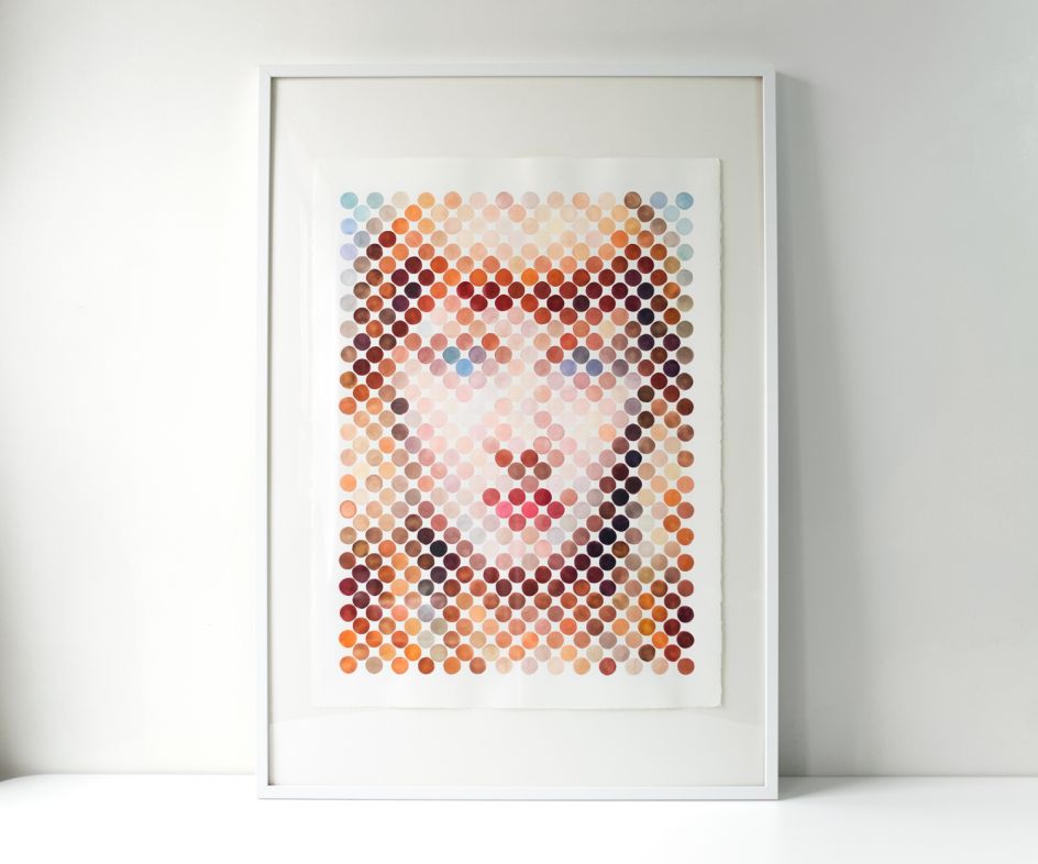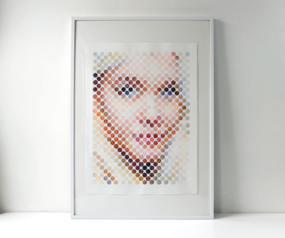 "My work is a pixellated style created with painted dots," Manire explains. "I like to use watercolour as my medium, and primarily to paint portraits. Right now, I'm interested in athletes and painting images that contain a certain amount of depth of focus in them."