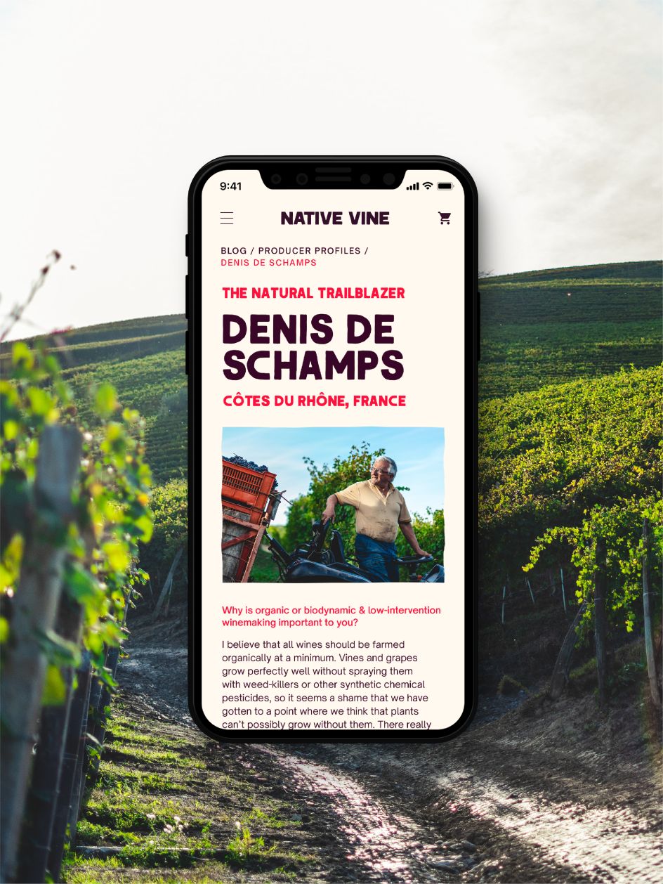 "Native Vine champions exciting natural and biodynamic wines, stocking a range of unique, organic and vegan wines from small-scale producers," explains Fiasco. "Specialising in wines from lesser-known regions and independent winemakers, they are passionate about strengthening the connection from vineyard to glass." With ambitious plans, Native Vine approached Fiasco last year with the challenge to make them more accessible to a wider audience.