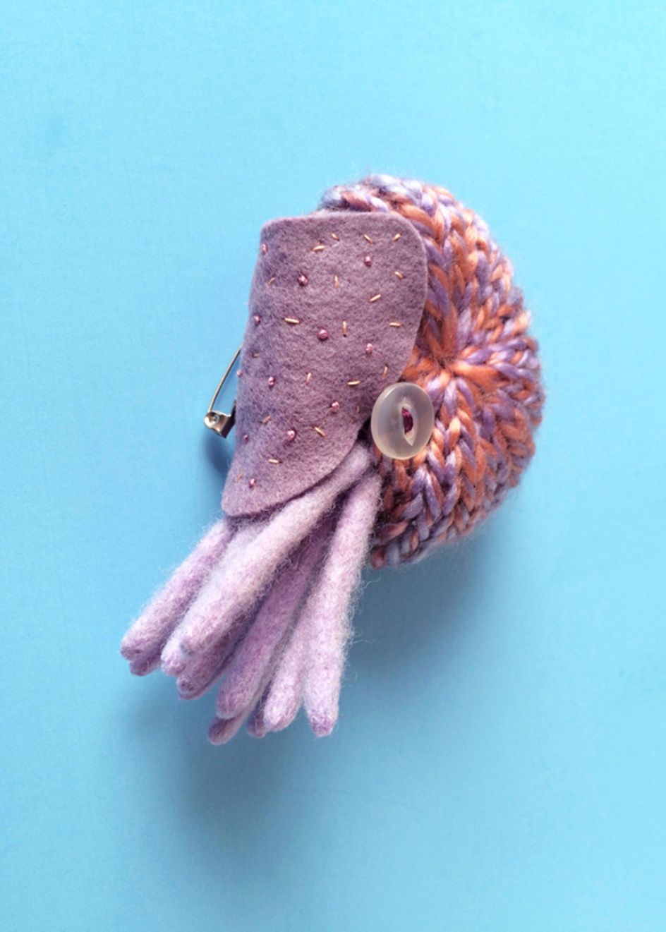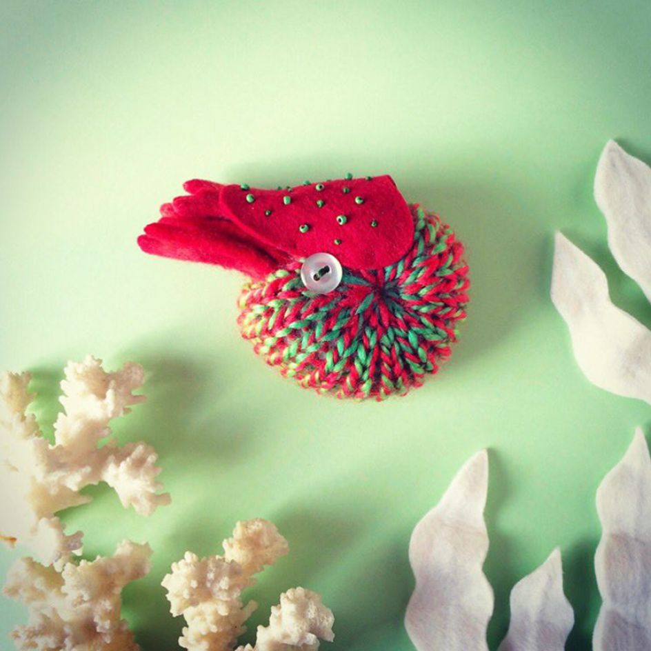 If you loved Hiné Mizushima's quirky felt figures inspired by colourful sea life, then you'll go crazy for her latest works – nautilus brooches that you can actually wear. Each marine mollusc is handmade from felt and wool and embellished with tiny pins with buttons for the eyes.