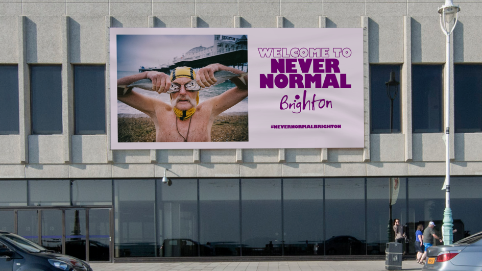 Honest and authentic images of the people and places fuel the campaign. It features well-known Brighton characters with the phrase 'Welcome to Never Normal Brighton', or the outlandish Royal Pavilion, illuminated at night with the tagline: 'We've always been open to the unusual'.