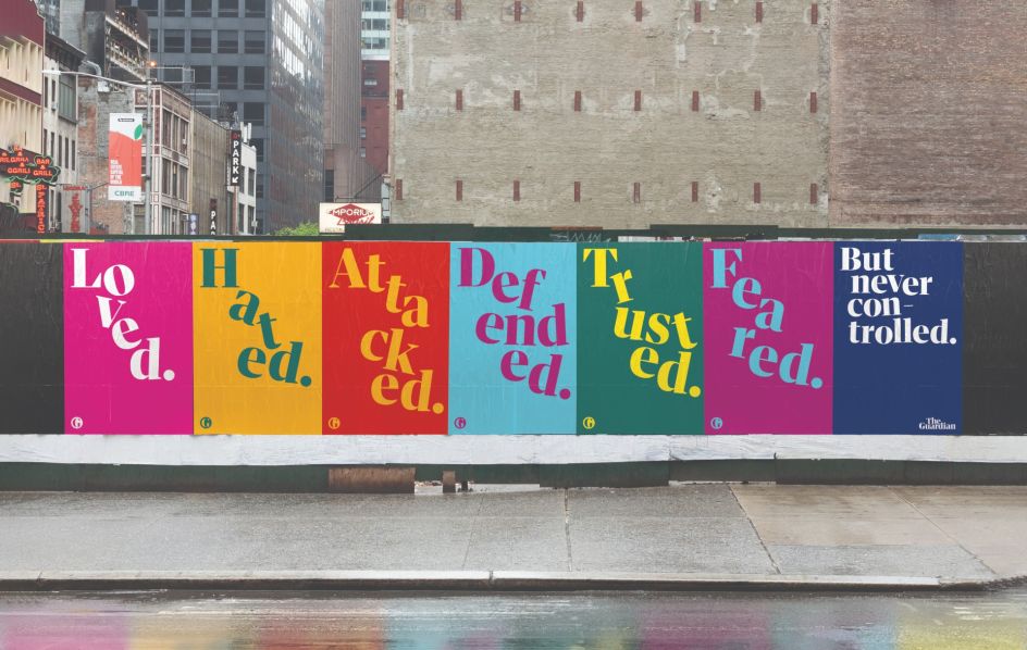 The campaign also features a range of bold and bright posters that will run alongside each other digitally and out of home, proudly proclaiming The Guardian to be 'Loved', 'Hated', 'Trusted', 'Feared', 'But never controlled'.