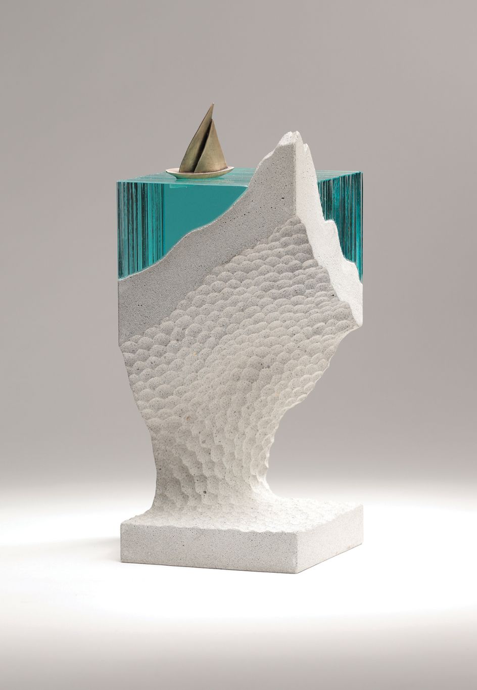 "The way I use the glass enables me to portray so many different elements of my conceptual ideas," he says. "Lighting plays a large part in the presentation of my pieces. When lit from beneath, the light reflects and gives off the illusion of the piece being brought to life. I hope viewers might imagine the work as something 'living' that creates the illusion of space, movement, depth and sense of spatial being. I like to play with the irony between the glass being a solid material and how I can form such natural and organic shapes."