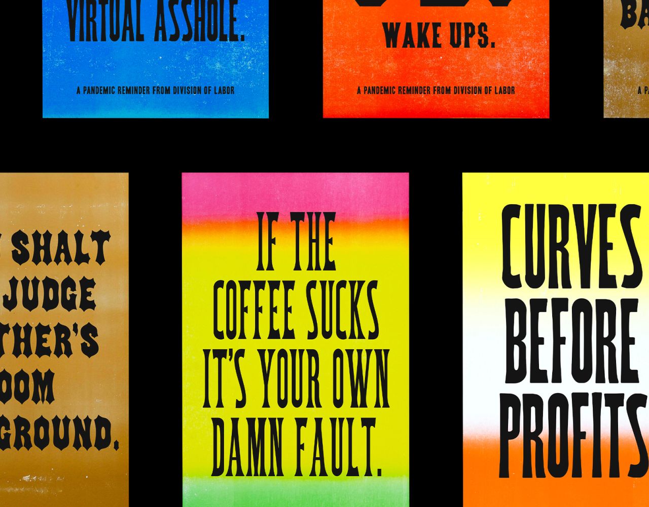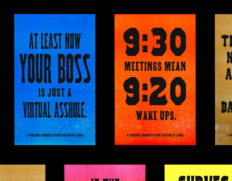 It's a collaboration between Sathe and Division of Labor writer Anton Darri Pálmarsson from Reykjavik. The pair created a collection of motion graphics and kinetic typography as gifs, that aim to sum up our collective experiences of the realities of work over the last few months. Paul Hirsch also created some letterpress prints as part of the project.