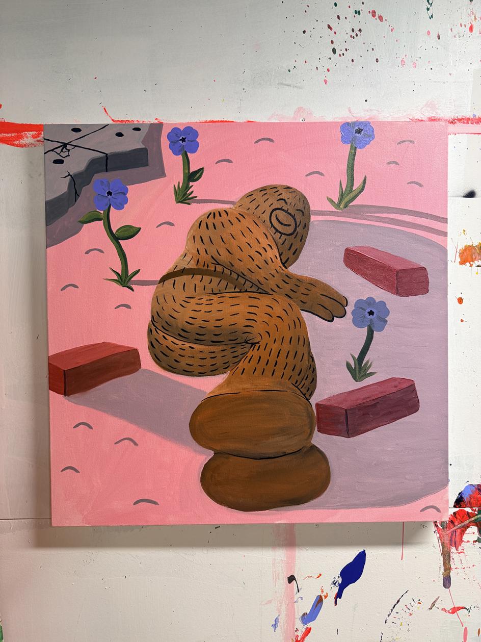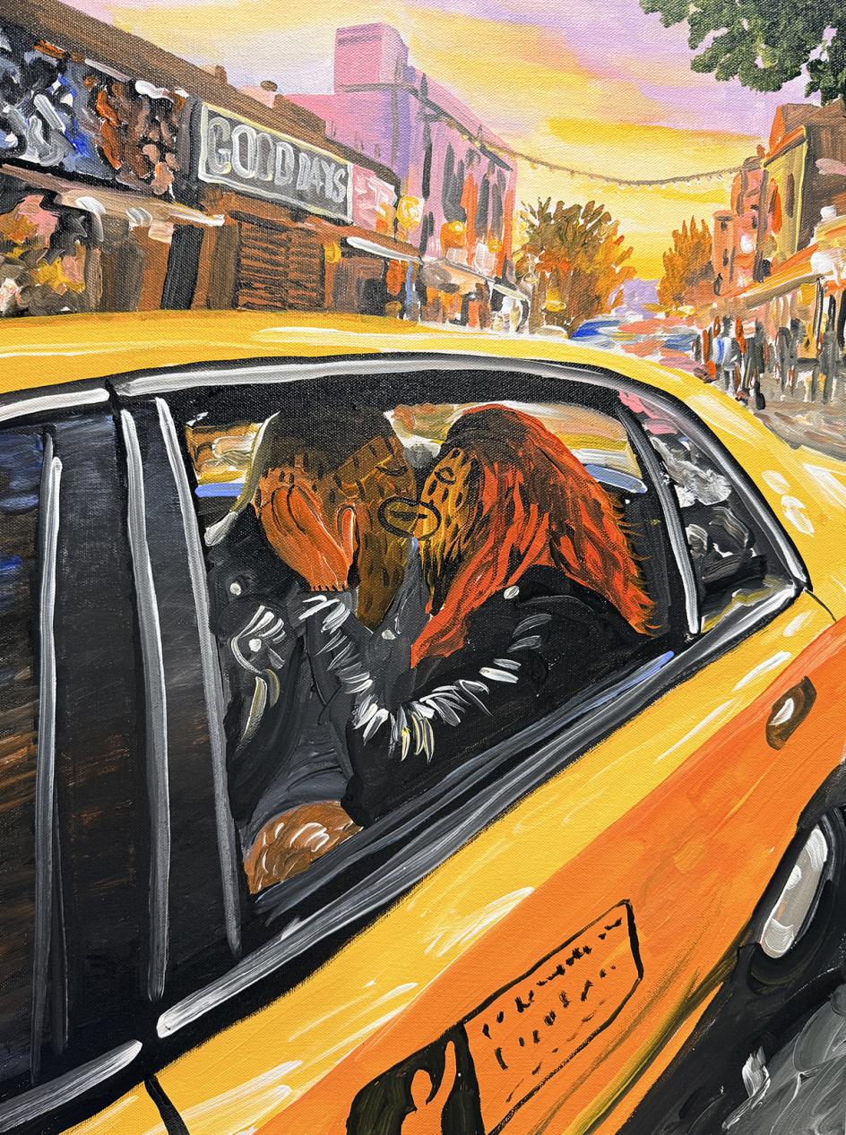 "Sometimes the inspiration comes from something simple, just noticing someone going about their everyday life. Other times it comes from something completely unexpected," says Brandon. "One painting was inspired by someone I saw carrying a huge bag of laundry to the laundromat, which felt like a very relatable New York moment. Another was inspired by spotting someone on the subway with a giant iguana sitting on their shoulders."