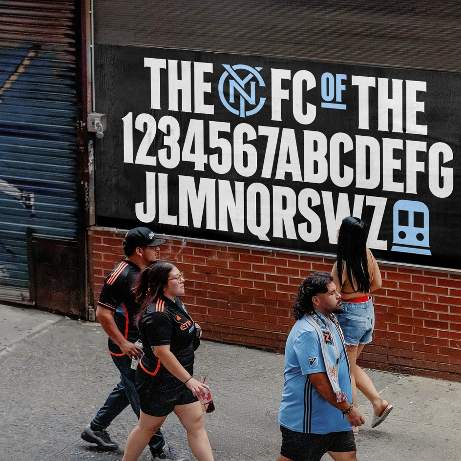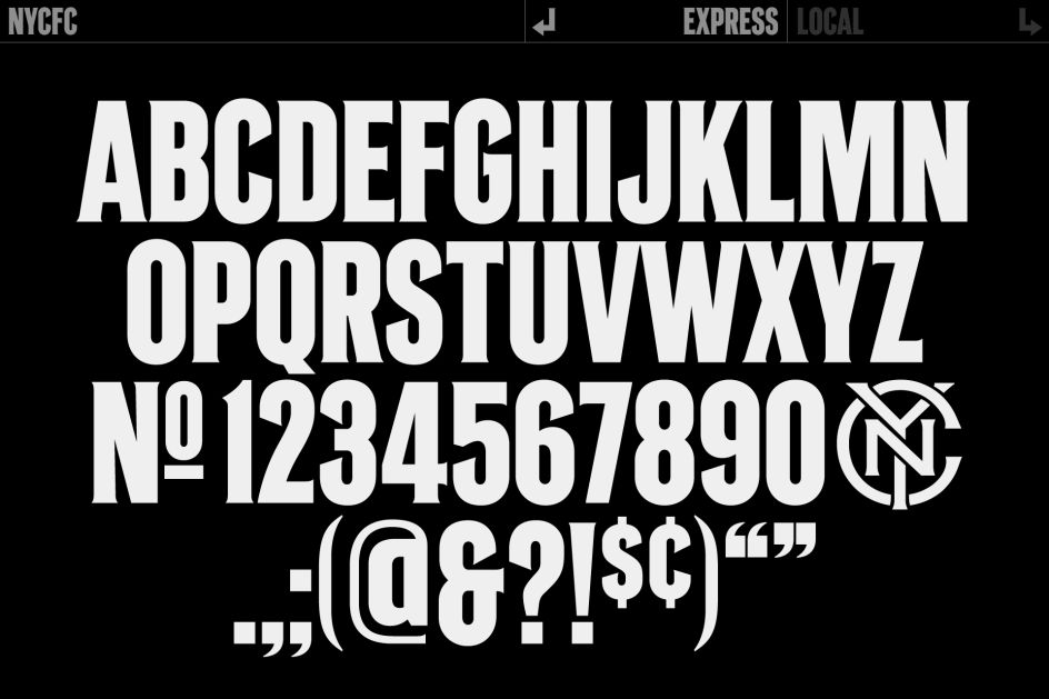 A custom typeface, 'NYCFC', developed in-house and drawn by Frere-Jones Type, sits front and centre on the badge. Again, this is inspired by the New York City subway, which has connected the city's five boroughs since its construction in 1932. Drawn in two styles—'Local' and 'Express'—the typeface combines the iconic details of historical pre-unification subway signage with a modern construction and bold attitude.