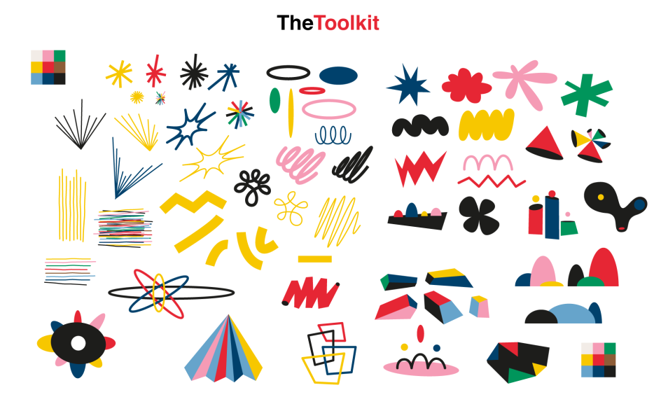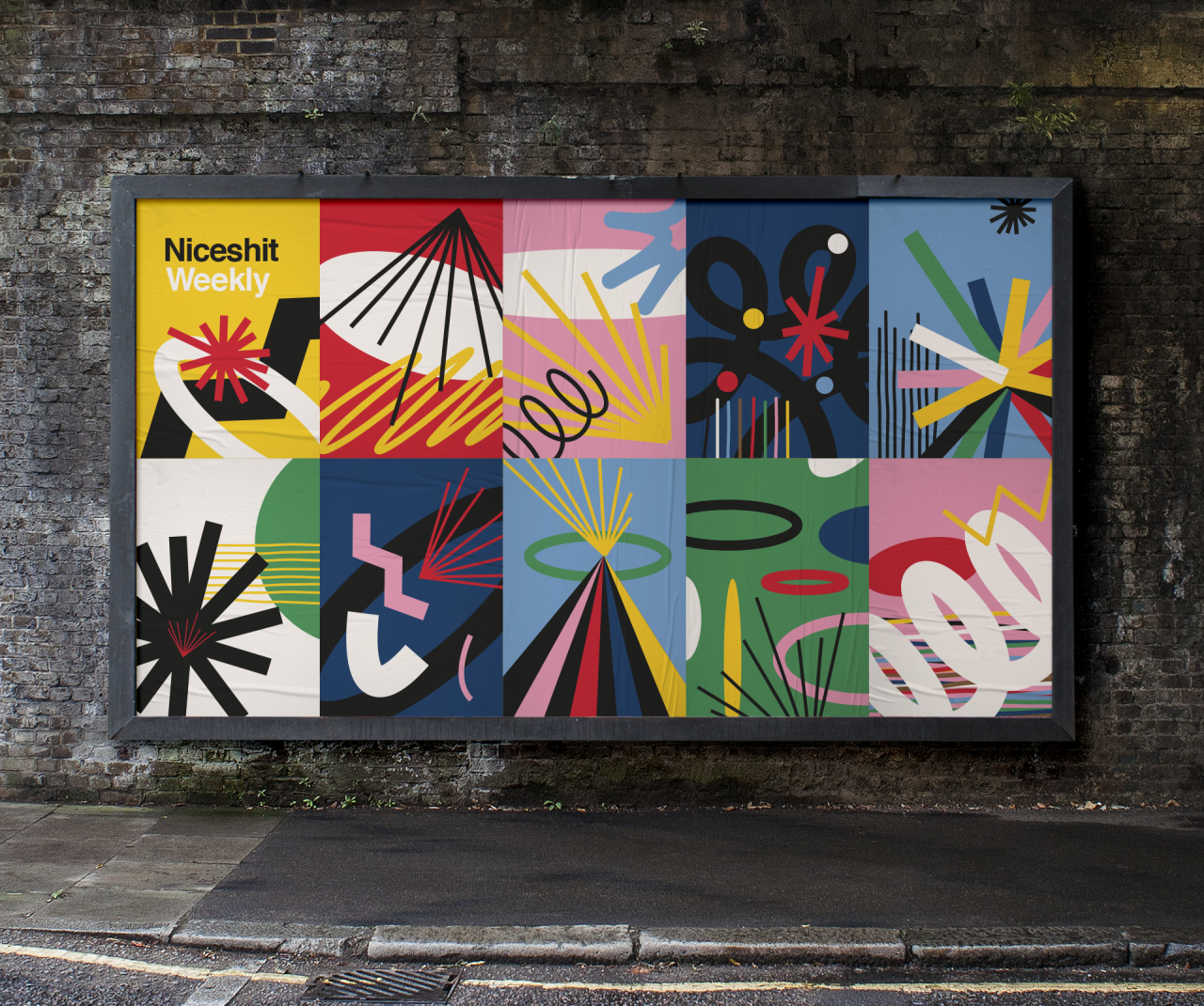Niceshit developed a supermodular, audiovisual system for its side venture. "We needed to be able to quickly put fun and engaging layouts together to publish each week in our Instagram Stories," says Guido Lambertini, animation director at the studio which boasts Google and MTV as clients. "So, we created a toolkit of elements, which then we animated separately and added a sound to each of them. With this, we can now create endless layouts and by just dragging and dropping the animated elements and combining them into a layout, we get the music!"