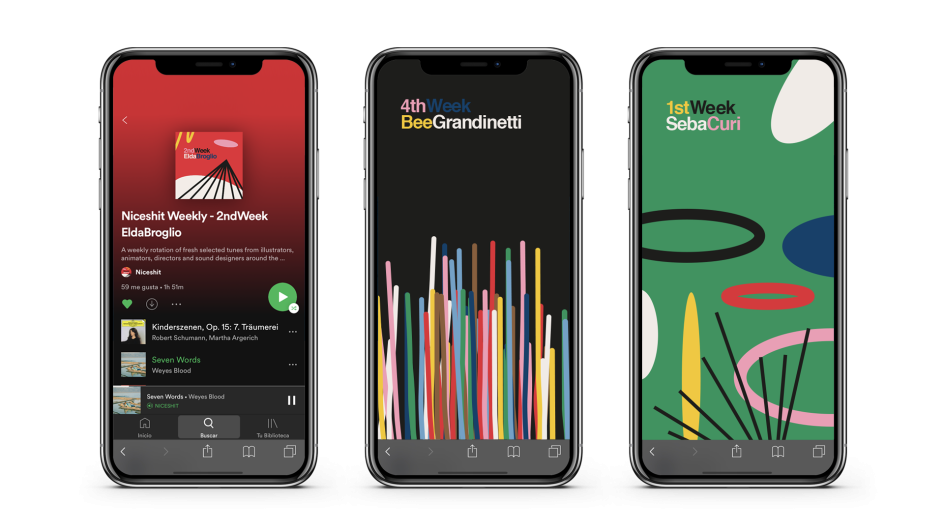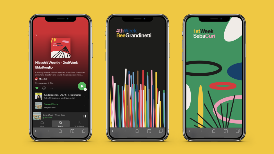 Well, this is rather nice. Or Niceshit, as the Barcelona design and animation studio of the same name might put it. It's a new passion project, freshly launched, inspired by an ongoing series of weekly Spotify playlists chosen by various artists around the world.