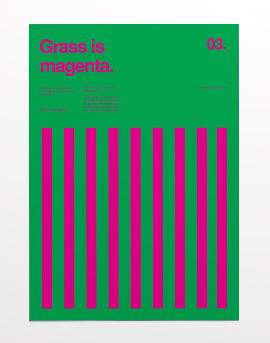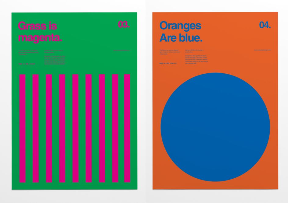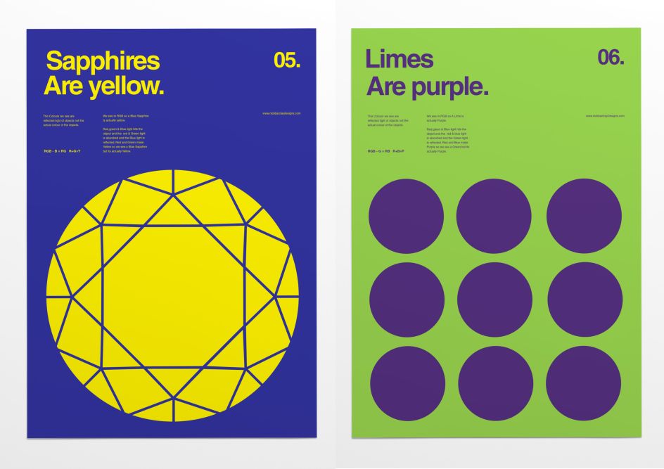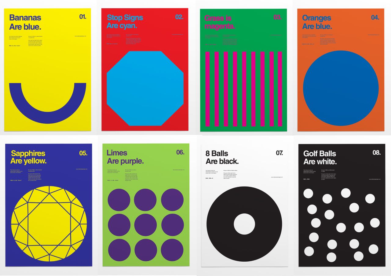 In his latest series, following his usual trademark minimalist style, he considers how we perceive colour and translates his findings into simple graphical posters.