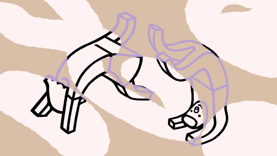 Visually, these fascinating explorations manifest themselves in the form of lively splits of purple, pink, beige and black; an unusual palette perfectly suited to an unusual topic. These are coupled with illustrations using thick black lines that reference aspects of the human body associated with hallucinations, such as the eyes.