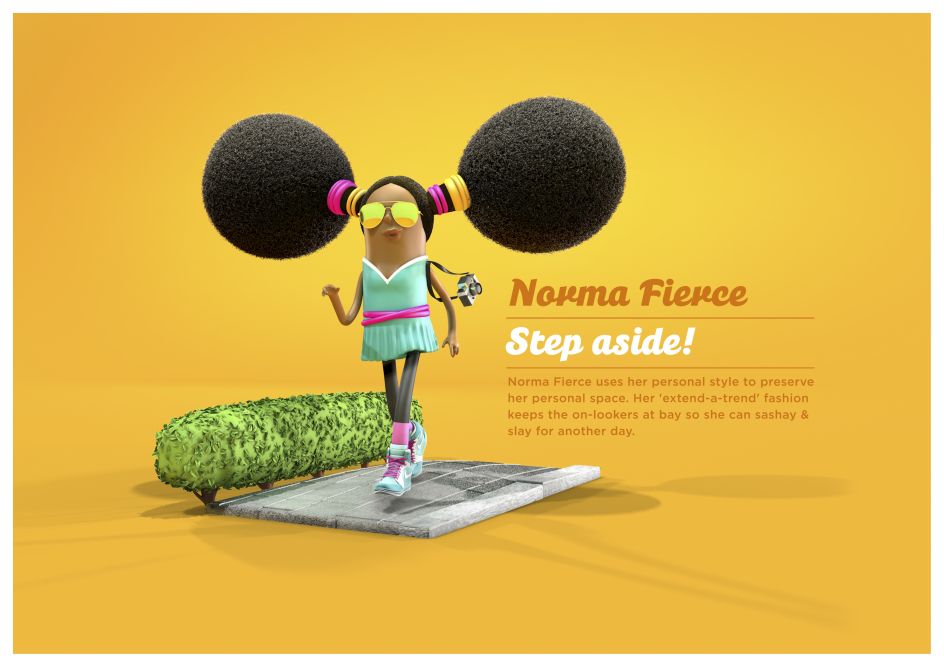 It's full of colourful characters that take a creative approach to assert their personal space. Like Norman Day with his one-metre cap that ensures there's always a proper gap and Norma Fierce with her extra-puffed Afro puffs that show that she doesn't play when it's time to keep the onlookers at bay.