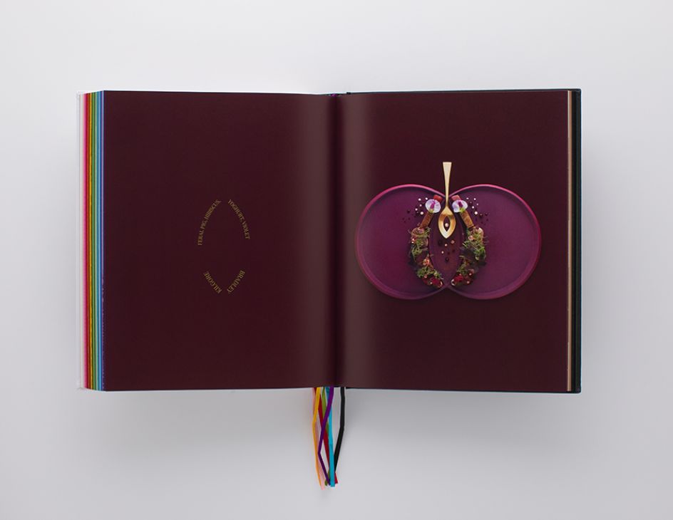 The custom typography is gorgeous; sitting alongside ornately decorated spreads and gold ink throughout. It's an intensely visual piece: each spread uses a different colour, while the cover is layered and debossed. It's little surprise to learn that the whole thing took around five years to complete.