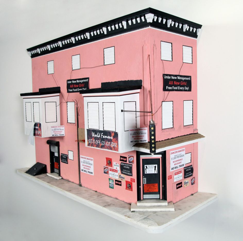 The work examines gentrification and history, how historical relevance is determined, and most importantly, what is worth preserving. Working from observation and photographs, the artist painstakingly recreates building facades that he discovers around his neighbourhood at a 1:12 scale. This scale is familiar for some viewers as standard dollhouse spec, but the treatment to the buildings is widely different.