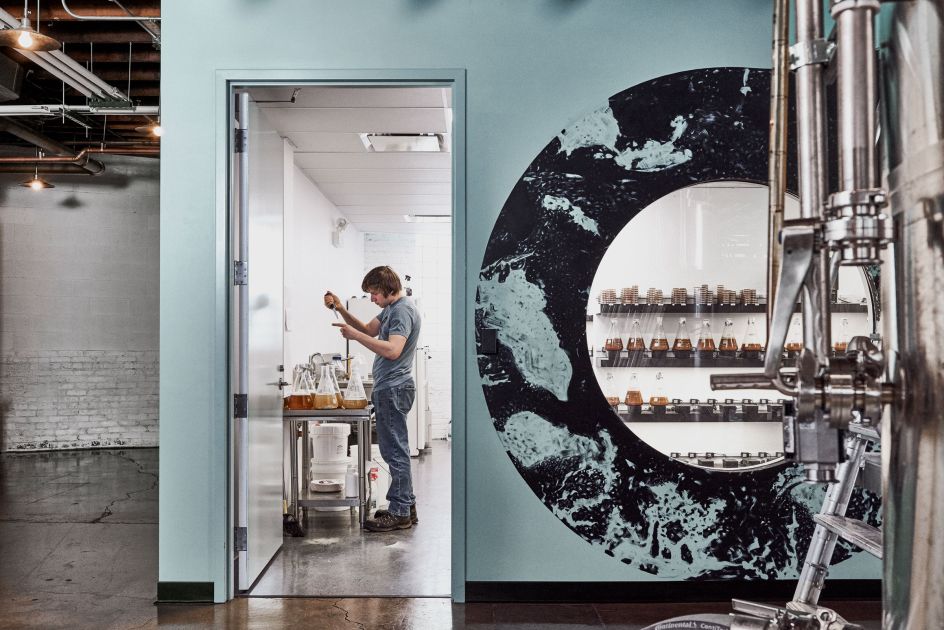 In fact, Knoed activated the yeast by mixing a warm sugar water solution with India ink to create 15 'yeast paintings'. It contrasted the paintings with clean backgrounds and bold type to "balance professionalism with the raw nature of the craft beer world".
