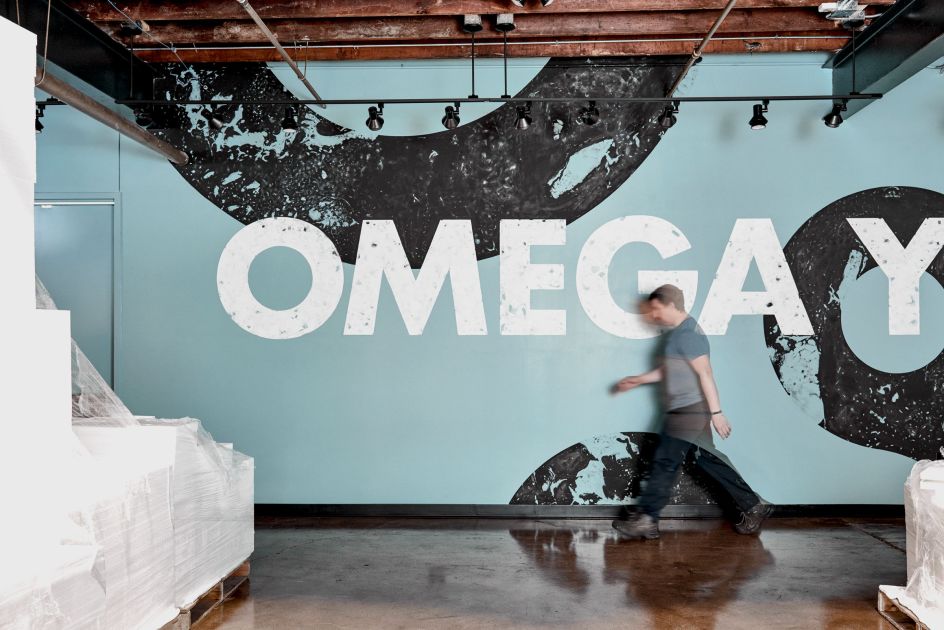 For the new logo, Knoed designed a letter 'O' (for Omega) with a budding yeast cell. It also created a set of 'budding' graphics that are used throughout the identity on things like posters, interior graphics and clothing. When they’re all put together, they form a graphic take on what scientists see under the microscope.