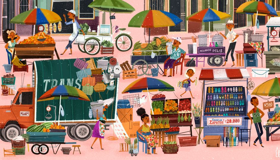 This beautiful set of illustrations is by Colombia-based designer and art director, Paola Escobar. The colourful drawings depict a bustling marketplace in California's Alameda, featuring a range of interesting characters going about their business.