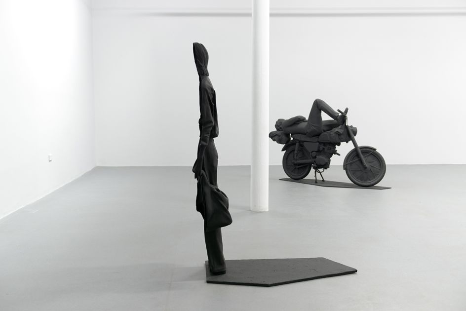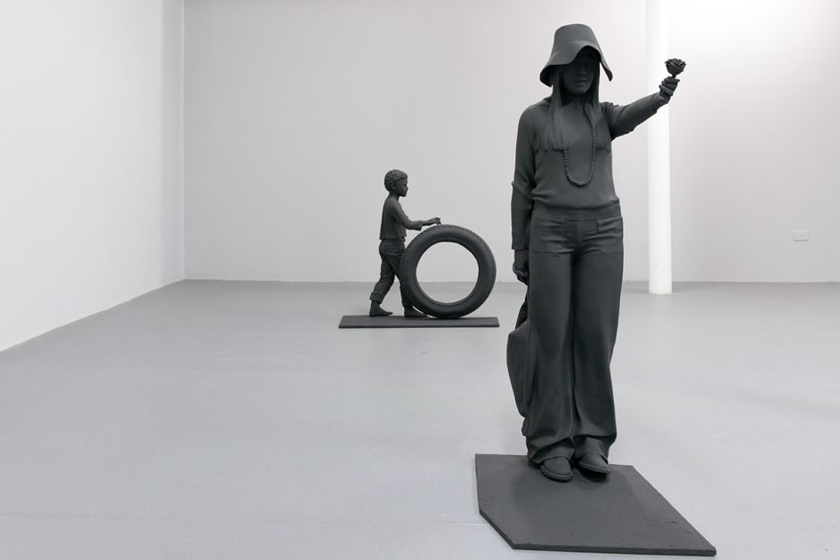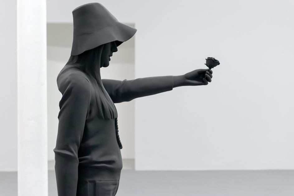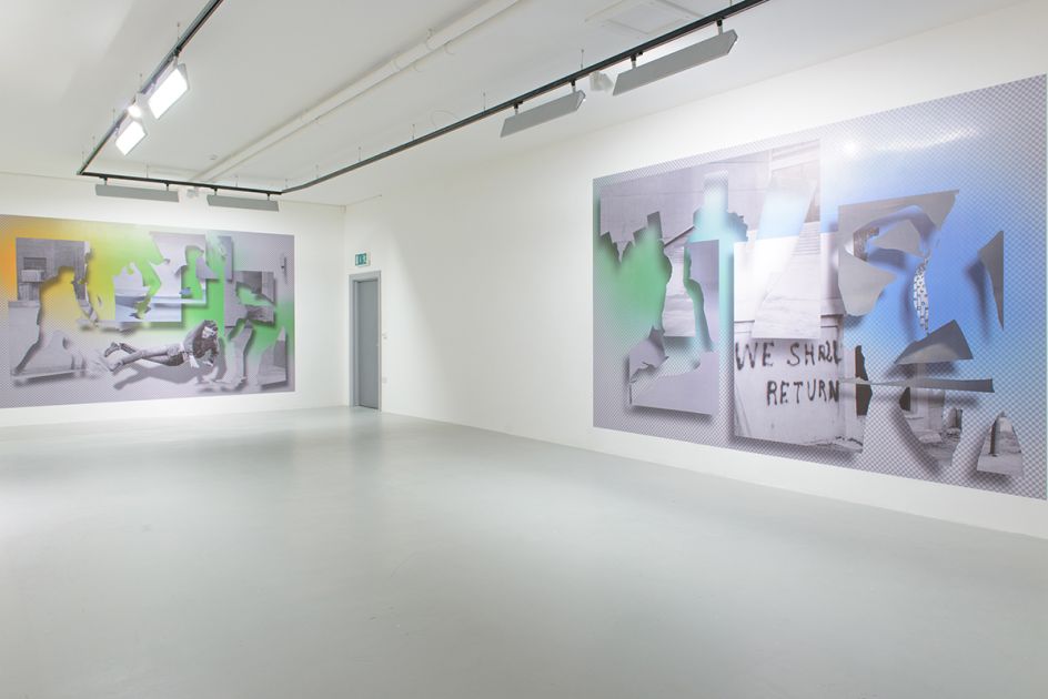 The gallery's statement reads: "The artist employs surface effects that exploit prettiness as a means of enchantment to lead her spectators onto the most virulent and radical terrain of political meaning. War and the power of violence are pervasive without being visible or binary. She advances masked, benefiting from the ability of certain images to blind the spectator, deploying work that is critical and sometimes provocative."