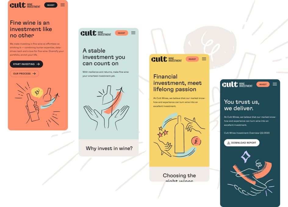 More broadly, Output developed ways for the team to share their knowledge in a uniquely 'Cult' style, from displaying data across the site to the design of investment reports. They coupled this with codes borrowed from the fintech and investment world to stand out against the wine category while showing Cult's depth of experience.