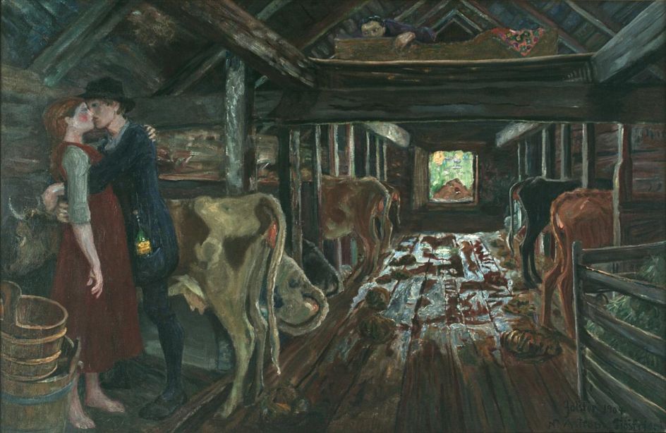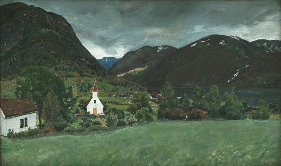 As an artist and bohemian, he stood out in the conventional rural village where he grew up, but he remained in Jølster for most of his life, and it was here that he found the motifs for nearly all of his paintings. Throughout his entire artistic career he focused on the same landscapes and locations and peopled them with the same human types. He imbued the landscapes with mysticism and an enigmatic symbolic content.