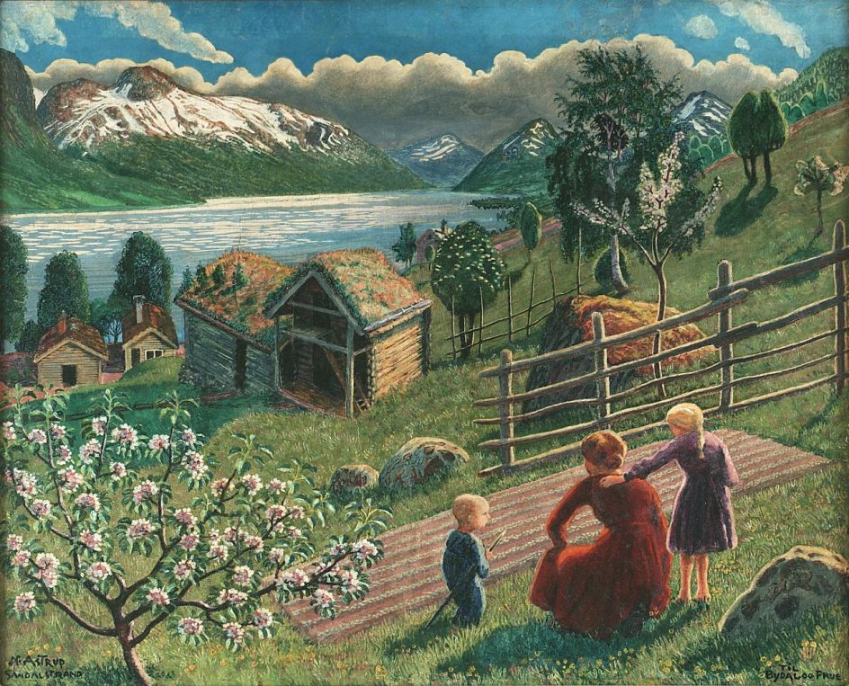 Born in Bremanger, Nordfjord in 1880, Astrup's family moved shortly thereafter to Ålhus in Jølster, where his father was a priest. His relationship with his father was marked at times by opposition and conflict, most likely because Nikolai could not quite accept the strict form of Christianity practiced at home. What's more, his wish to become an artist went against his family’s expectations.