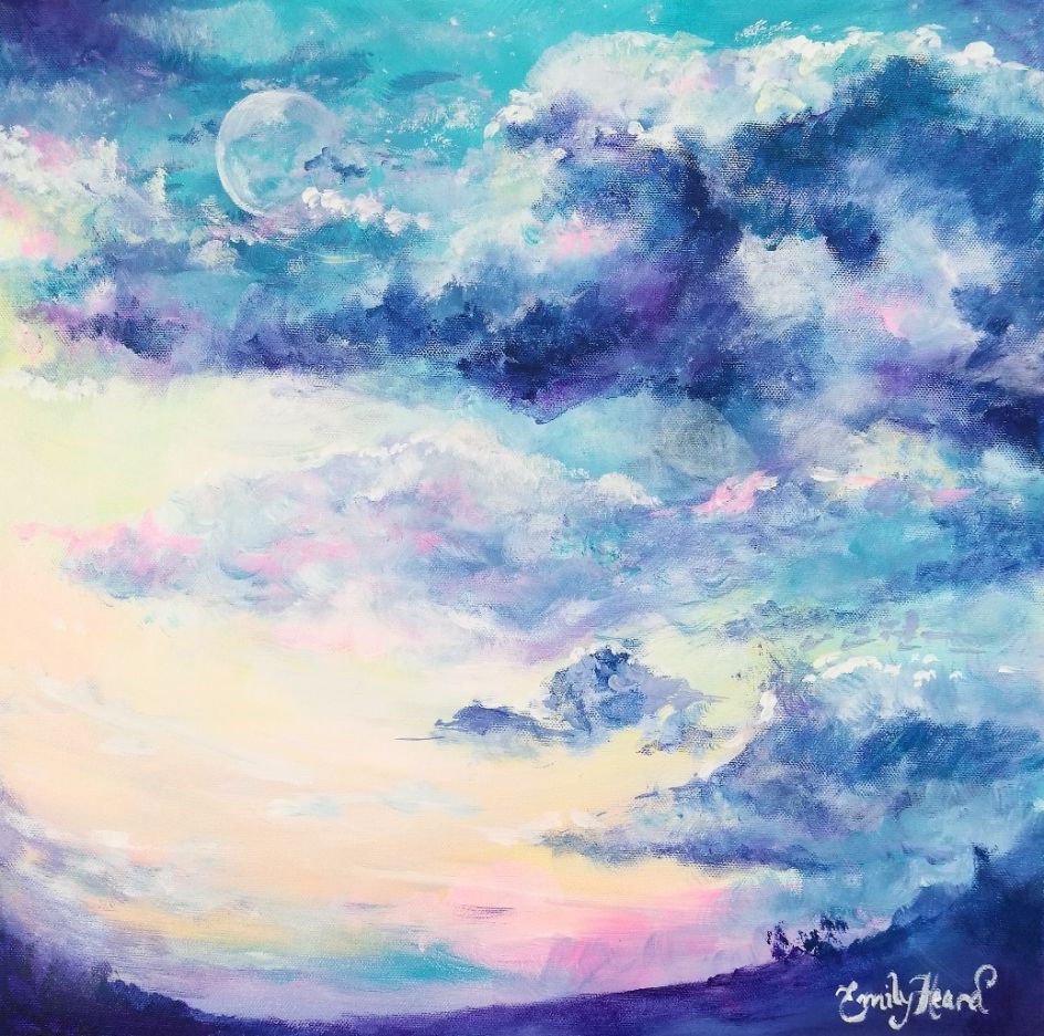 Emerging Welsh artist Emily Louise Heard, is preparing for her third solo exhibition in South Wales with a series of colourful acrylic paintings dedicated to exploring the beauty of the sky. "I’ve always been fascinated by the sky. It provides me with an endless source of inspiration because you simply cannot see the same sky twice," Emily explains. "To me it is like a painting that an artist is continually working on, forever changing in differing levels of light, tone and shade and I love the challenge of trying to capture the beauty and the emotion that the sky evokes."