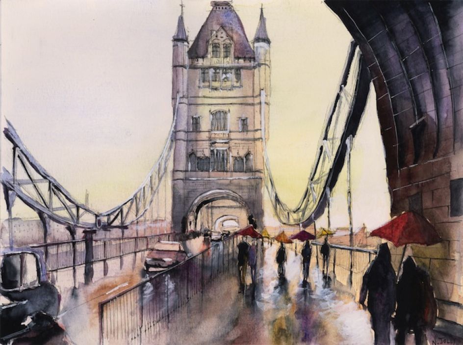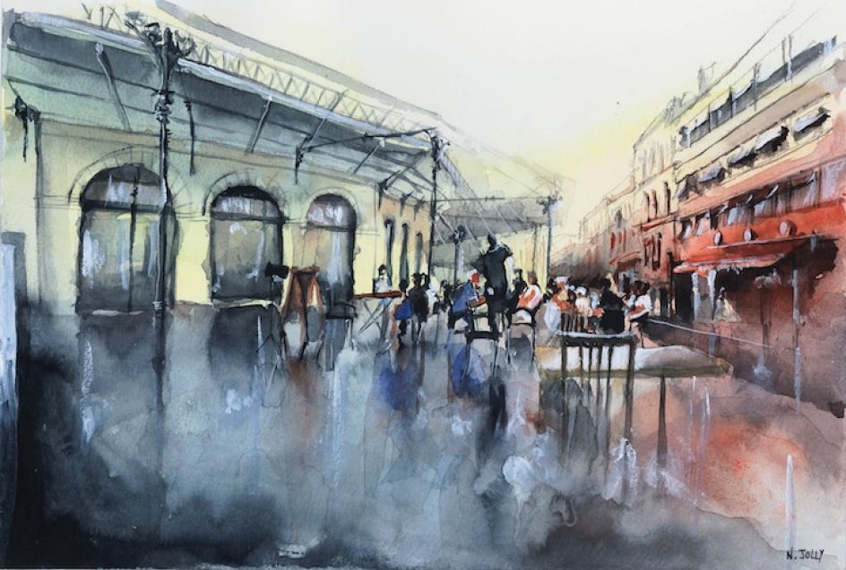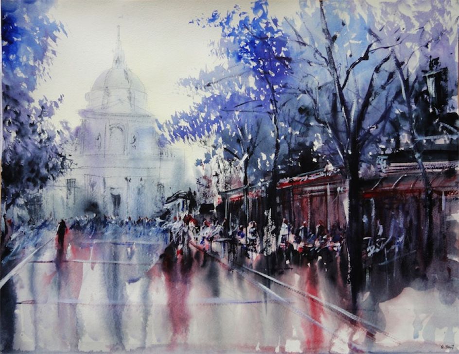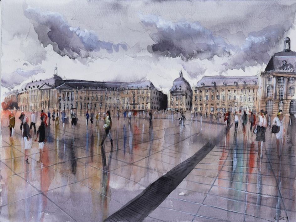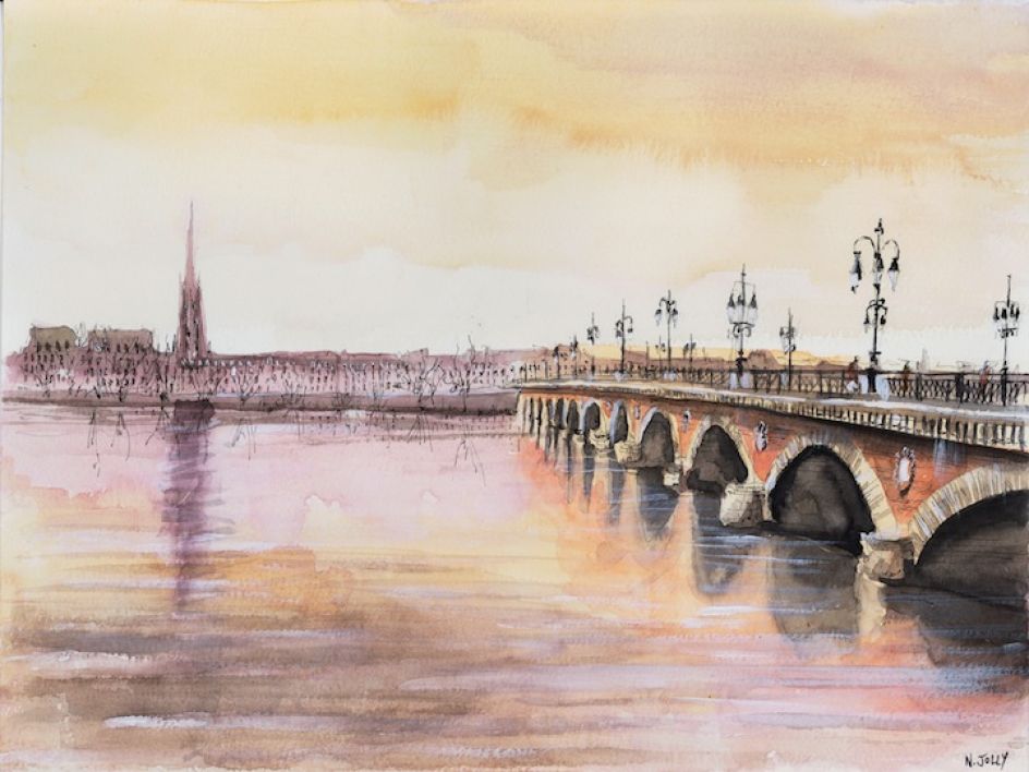 From the Louvre in Paris to the Pont de Pierre in Bordeaux, where Nicolas is based, he uses a wealth of colour in his acrylic and watercolour paintings, usually diluting what he paints to create an interesting, almost romantic contrast.