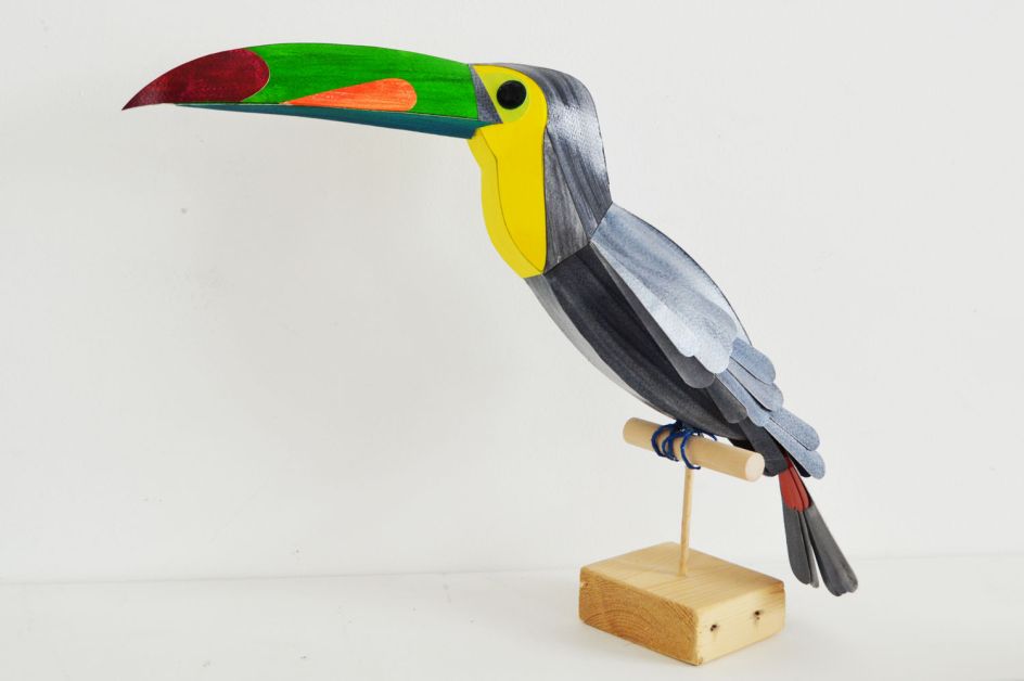 "Each creature has his own individual markings and colour palette. I cut out the pieces, build and varnish them. A lot of processes go into building each sculpture. They are on my desk, in different stages, for weeks!"