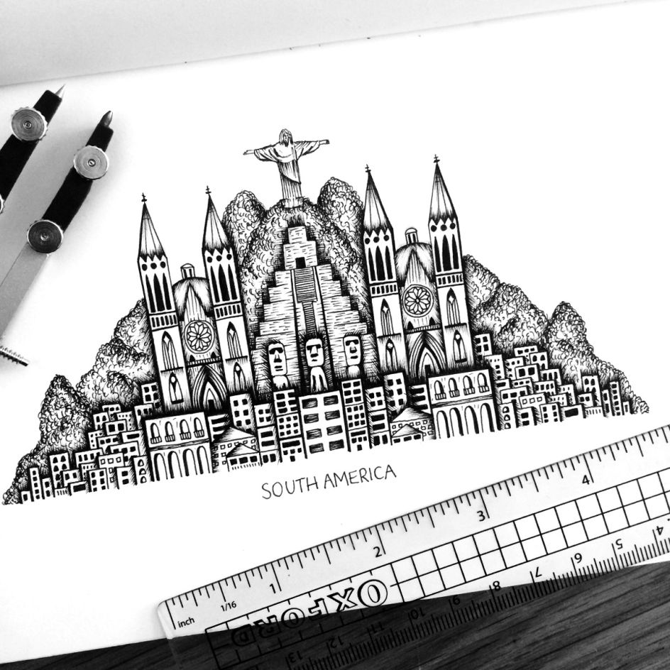 “When I'm illustrating I use a desk with no computer so I am free from distractions and cannot get lost in admin or emails. My trusty tools consist of a few rulers, compass, protractor, rubber, pens of various sizes and pencils. Depending on what I'm drawing, I will often have reference images and books for inspiration. Oh, and my phone – I’m such a podcast geek, but we won’t get into that otherwise I'll just end up talking about Serial, Answer Me This, Criminal, The Black Tapes, Professor Blastoff and so on...