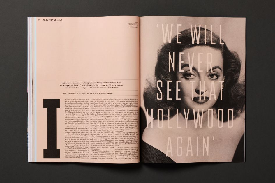 Content-wise, in-depth articles and reviews remain the backbone of the magazine, and popular regular features such as Dream Palaces (odes to cinemas by filmmakers and others) are retained. These are joined by new regular features looking at soundtracks and poster art, as well as greater access to the magazine's 90-year-spanning archive, such as the new This Month In…page, which digs into an issue from the past and spotlights what people were talking about and how. The first big archive piece is an interview with Bette Davis to coincide with BFI Southbank's Bette Davies: Hollywood Rebel season, which is running throughout August.
