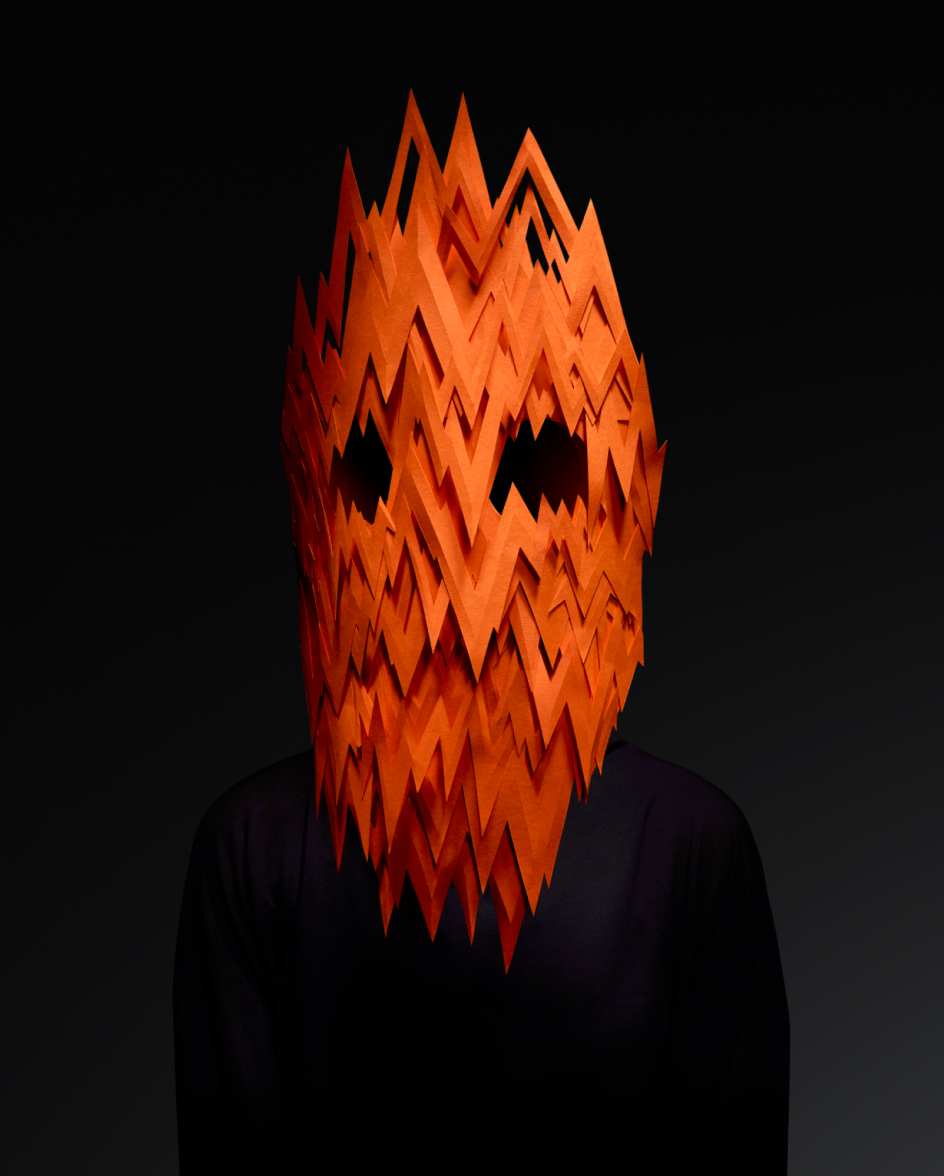 In order to subtly conceptualise the paper masks, Pentagram conducted an exhaustive audit of words, symbols, actions and facial expressions associated with Darwin’s universal emotions – anger, fear, surprise, disgust, joy, sadness and contempt. After compiling extensive mood boards, Pentagram identified reoccurring shapes and forms, which ultimately informed the visual signature of each emotion.